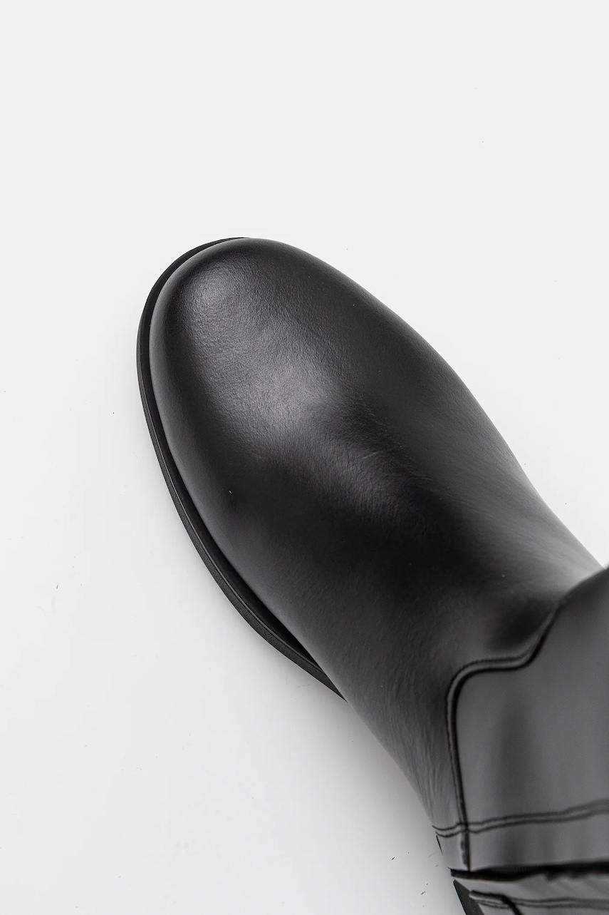 - Okrągły, usztywniony nosek. - Usztywniony zapiętek zapewnia doskonałe wsparcie kostki i pięty. - Wygodne, boczne zapięcie na suwak ułatwia wkładanie i ściąganie. - Wnętrze buta wykonane z wegańskiej skóry. - Obwód cholewki: 40 cm. - Wysokość cholewki: 43 cm. - Długość wkładki wynosi: 26 cm. - Wymiary podane dla rozmiaru: 37.