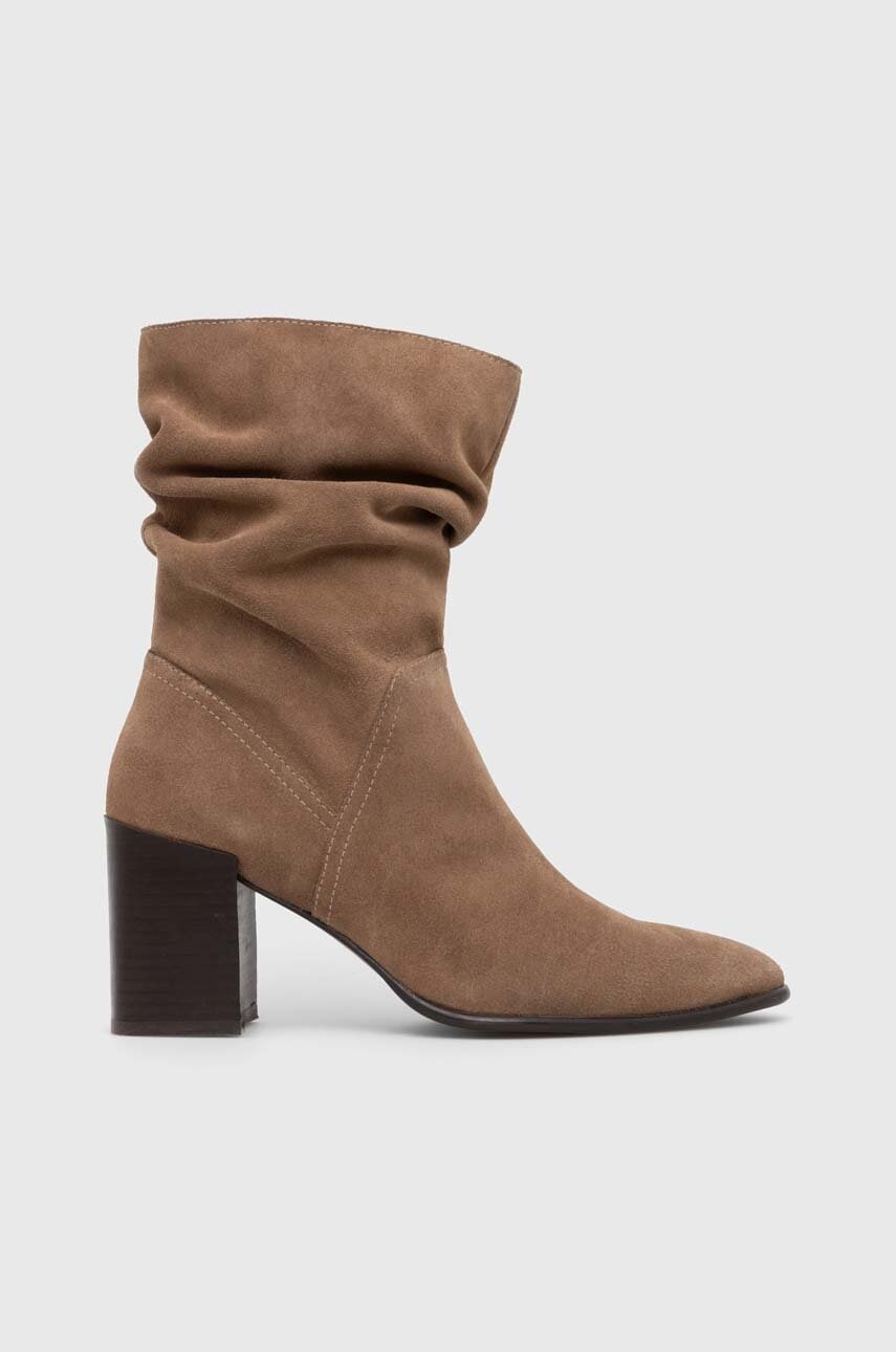Medicine kozaki zamszowe damskie kolor beżowy na platformie
