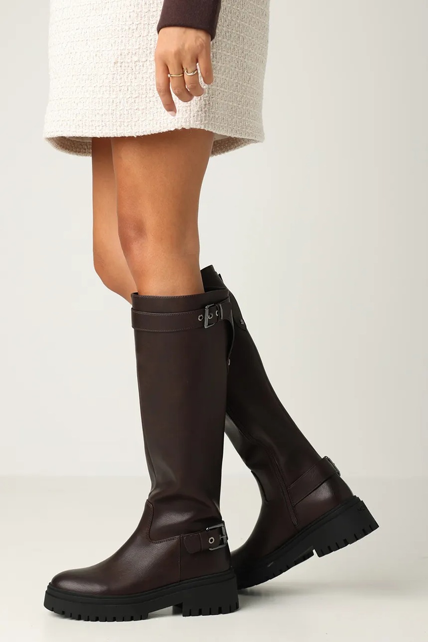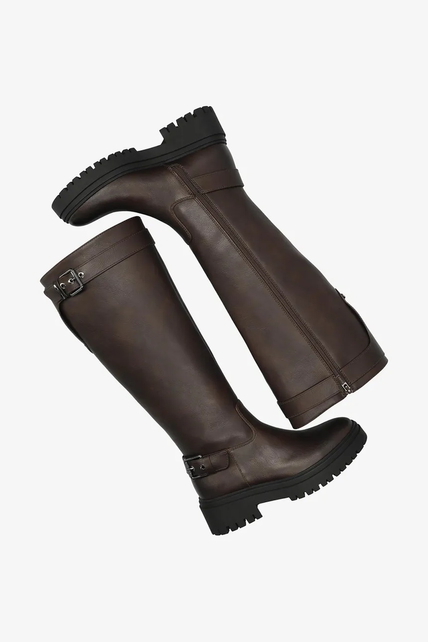 Mexx kozaki SHAMIA KETO damskie kolor brązowy na płaskim obcasie MI001802653W