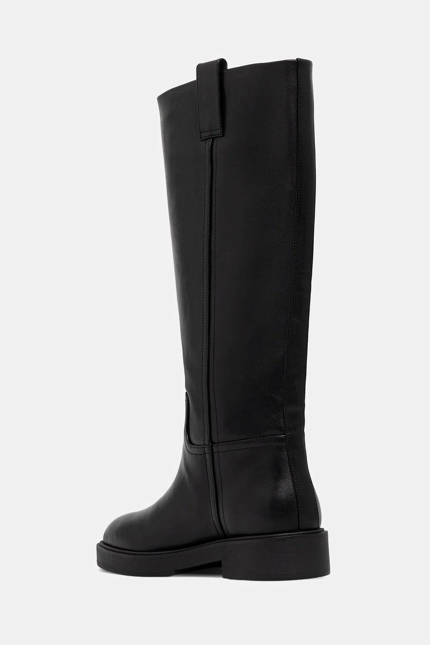 Nokwol kozaki skórzane Jose Black Leather damskie kolor czarny na płaskim obcasie Jose Black Leather