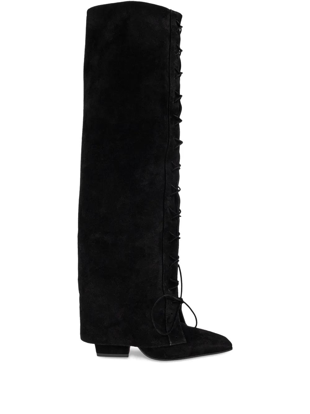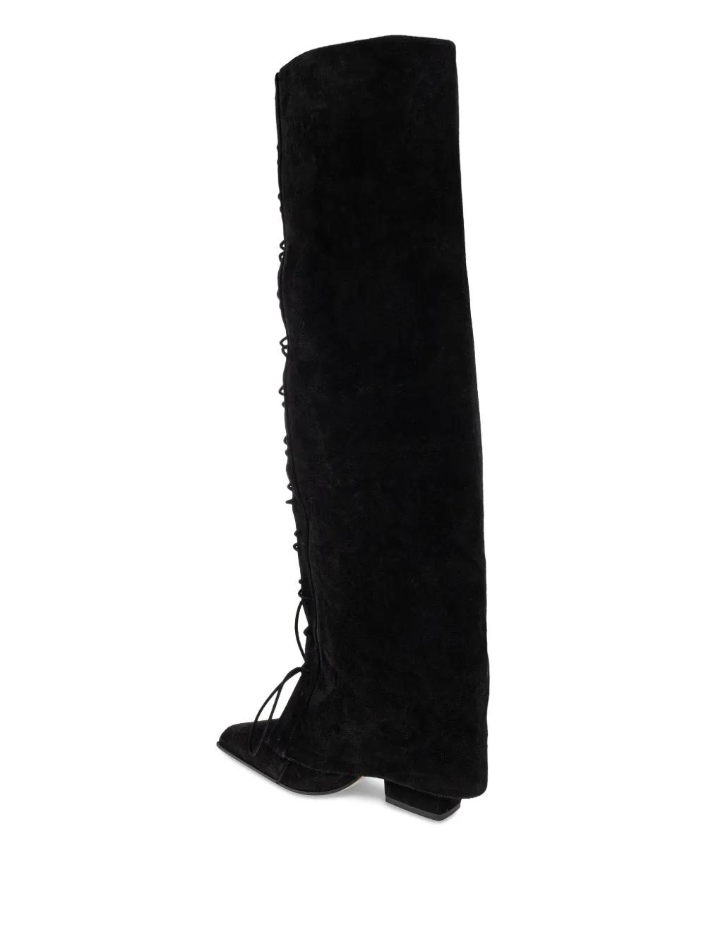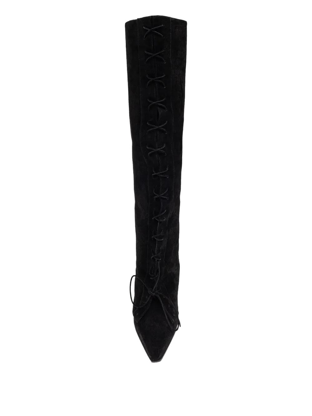 Paris Texas 100mm lace-up pointed over-the-knee boots - Black