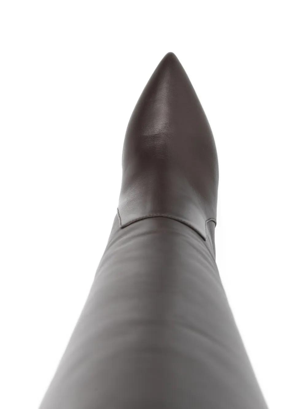 brown calf leather pointed toe stiletto heel knee-high shaft side zip fastening
