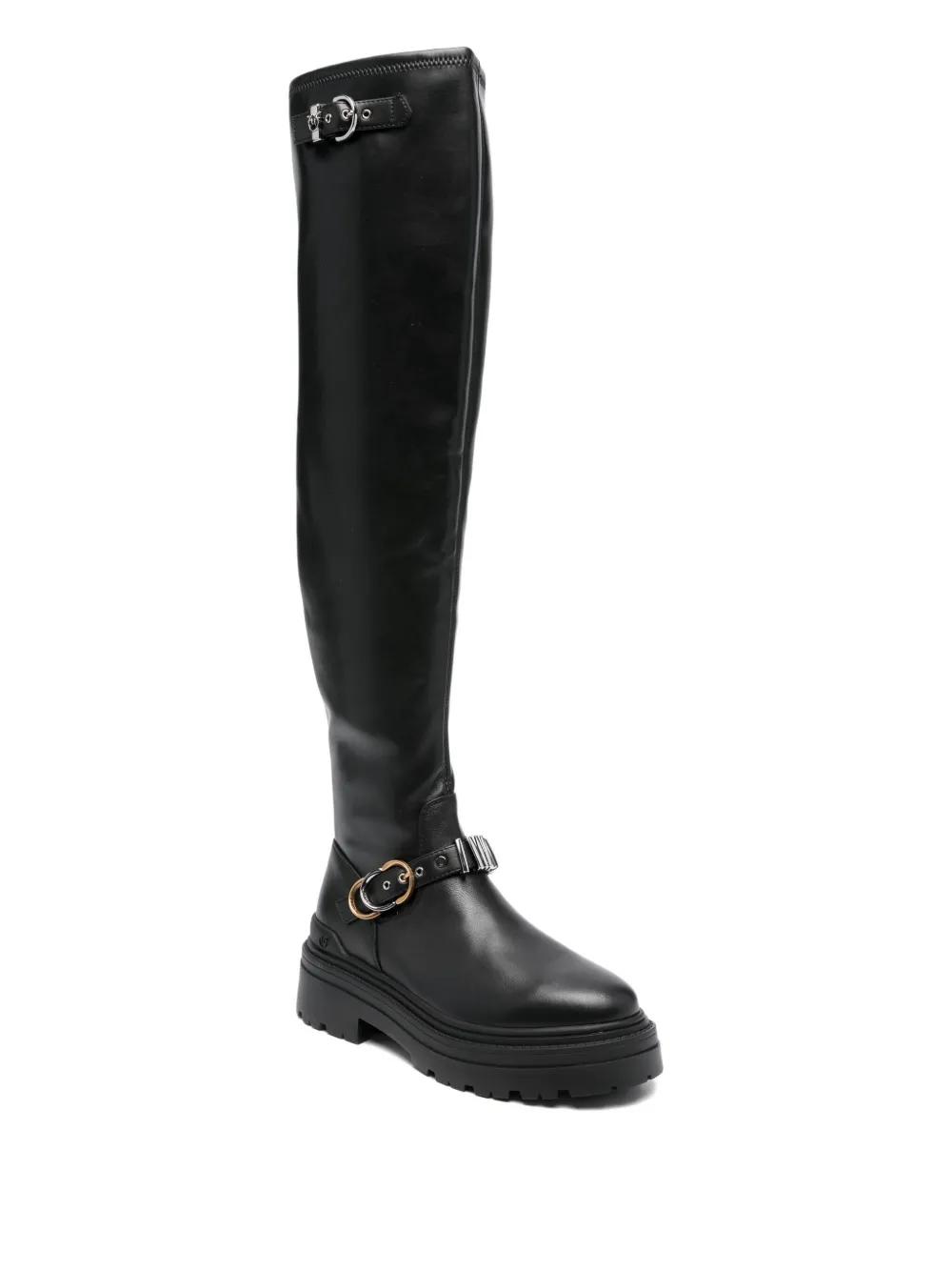 black leather knee-high shaft platform sole buckle detail