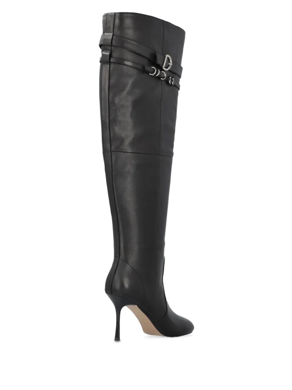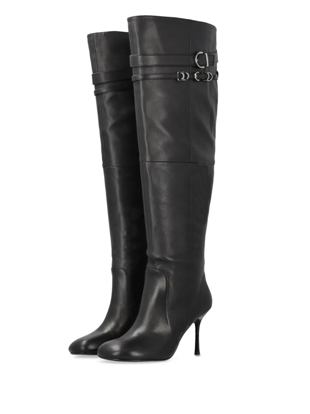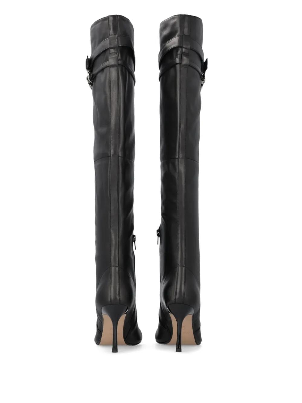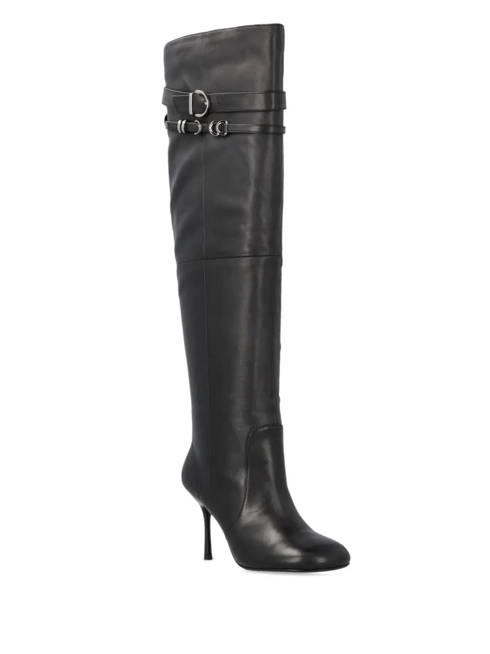 black side zip fastening decorative buckle detail round toe stiletto heel