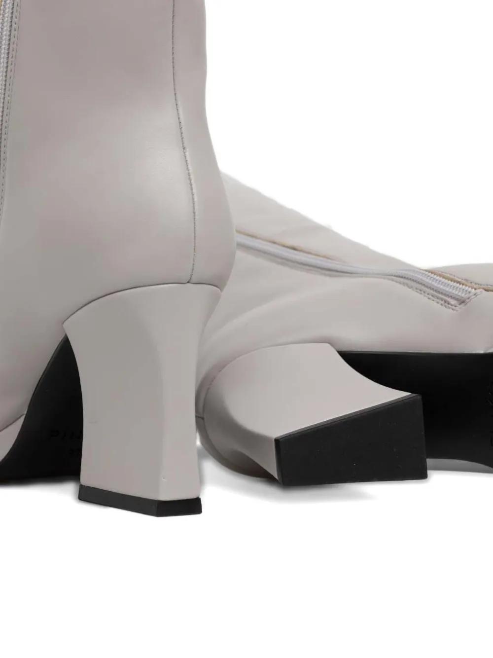pearl side zip fastening oval toe block heel platform sole knee-high