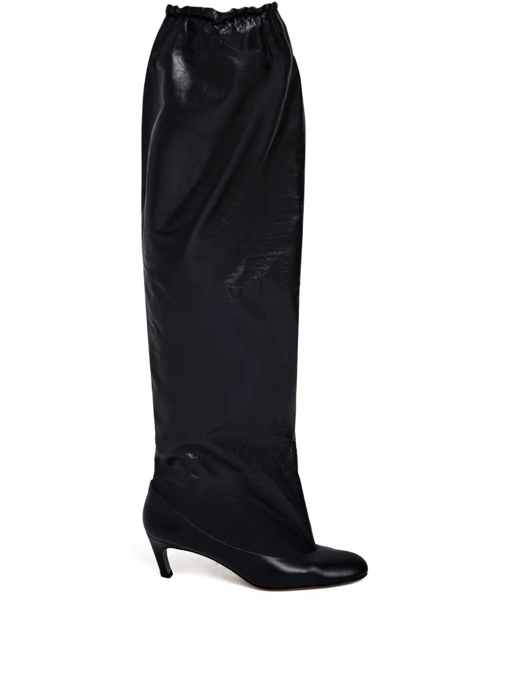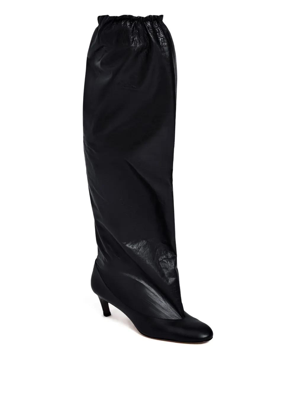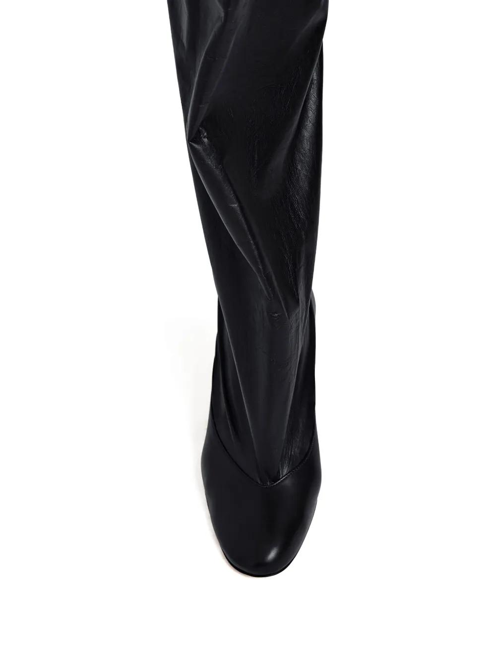 black calf leather elasticated edge kitten heel round toe pull-on style