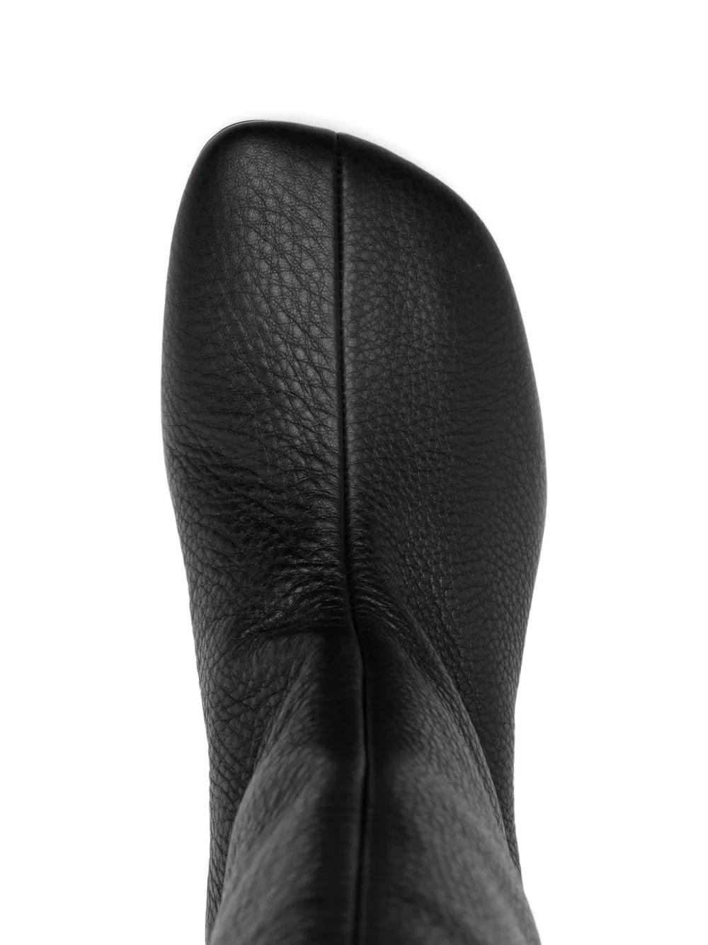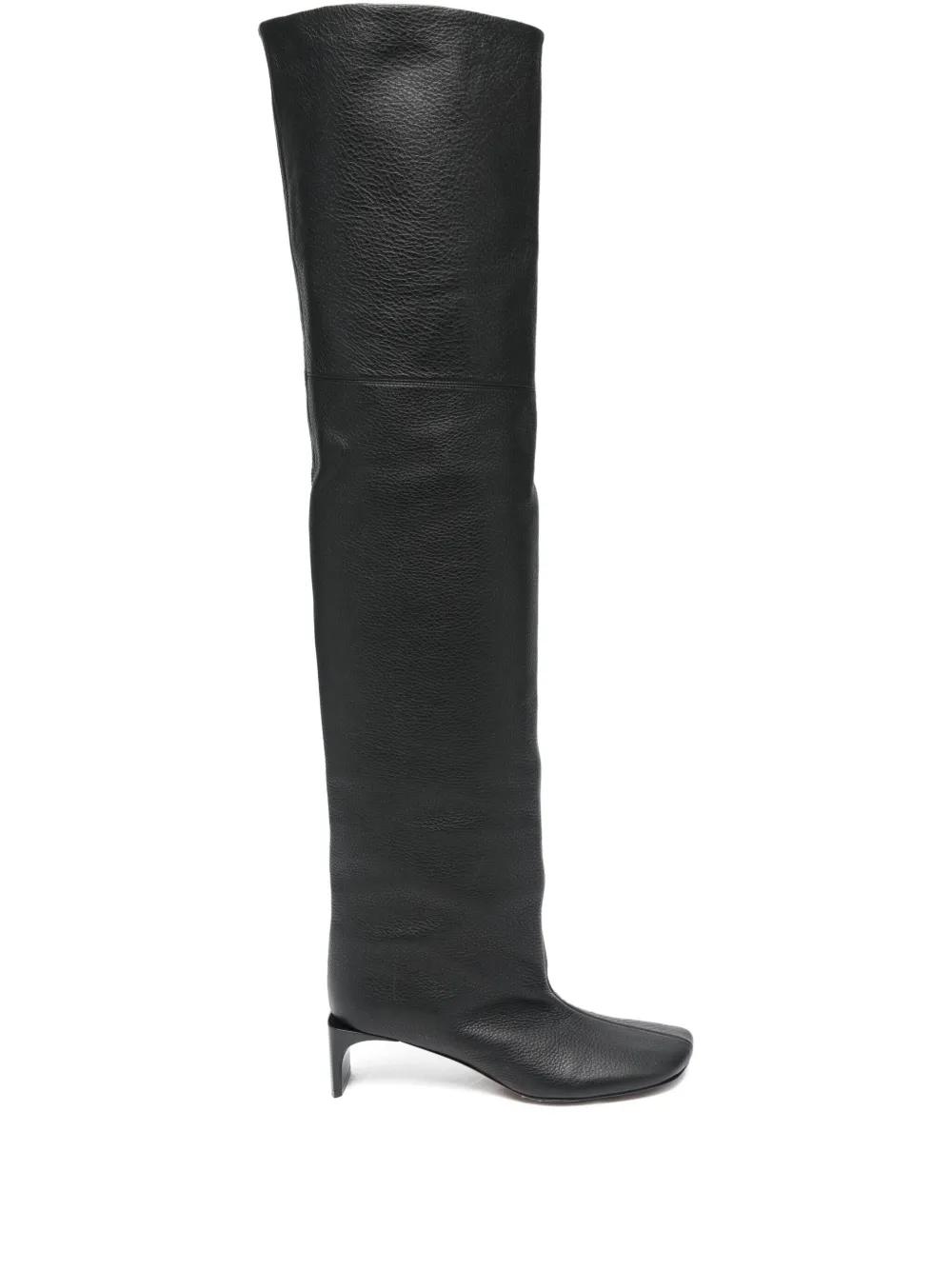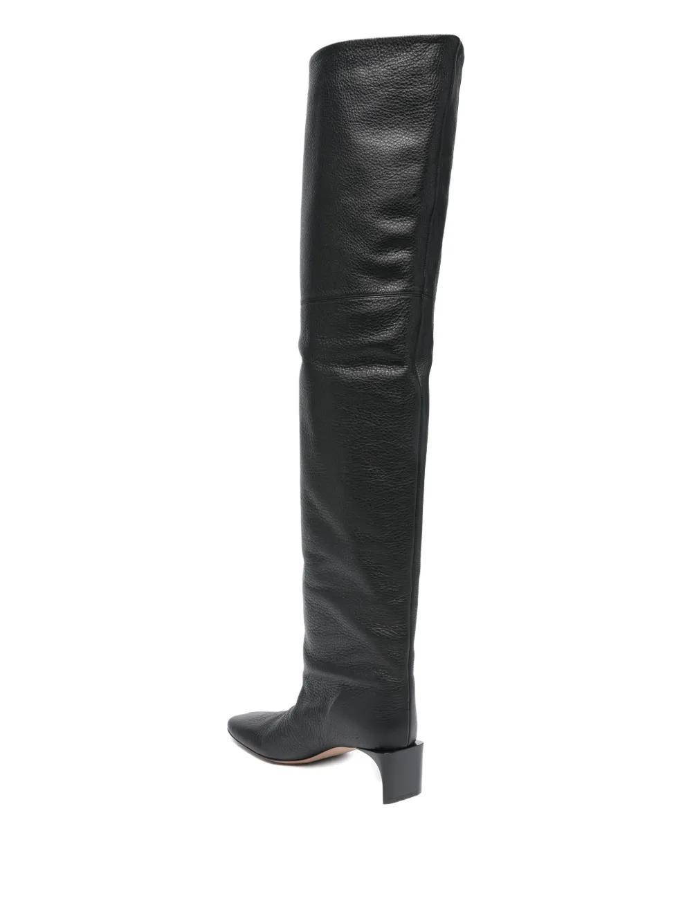 black pointed-toe sculpted-heel knee-high pull-on style leather