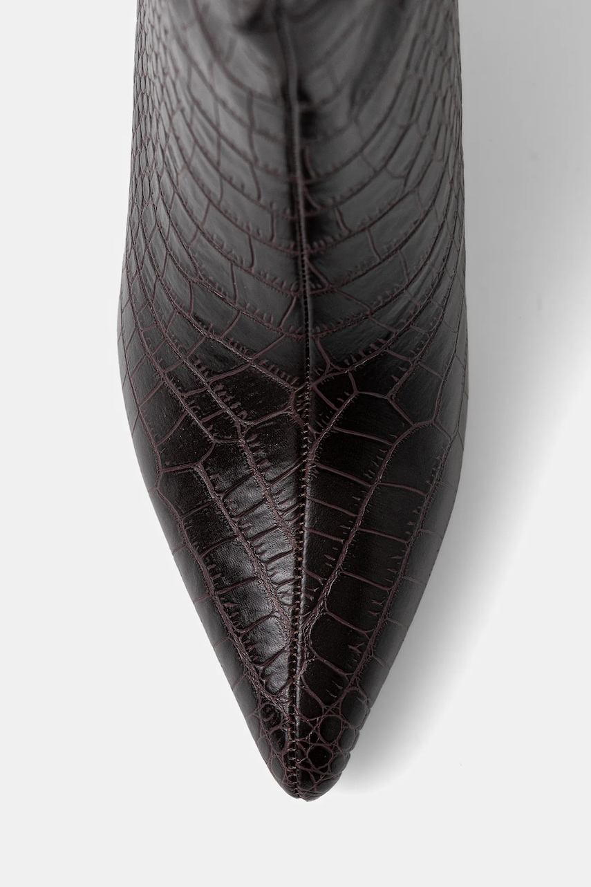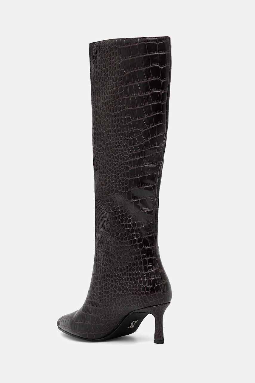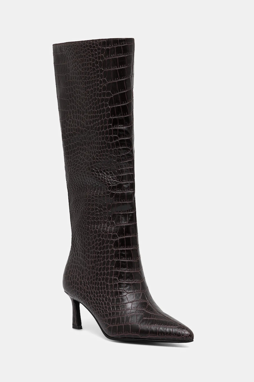 - Usztywniony nosek. - Usztywniony zapiętek zapewnia doskonałe wsparcie kostki i pięty. - Model na obcasie typu szpilka. - Gumowa podeszwa zewnętrzna jest wytrzymała i odporna na uszkodzenia. - Obwód cholewki: 38 cm. - Wysokość cholewki: 38 cm. - Wysokość obcasa: 6 cm. - Długość wkładki wynosi: 25 cm. - Wymiary podane dla rozmiaru: 36.