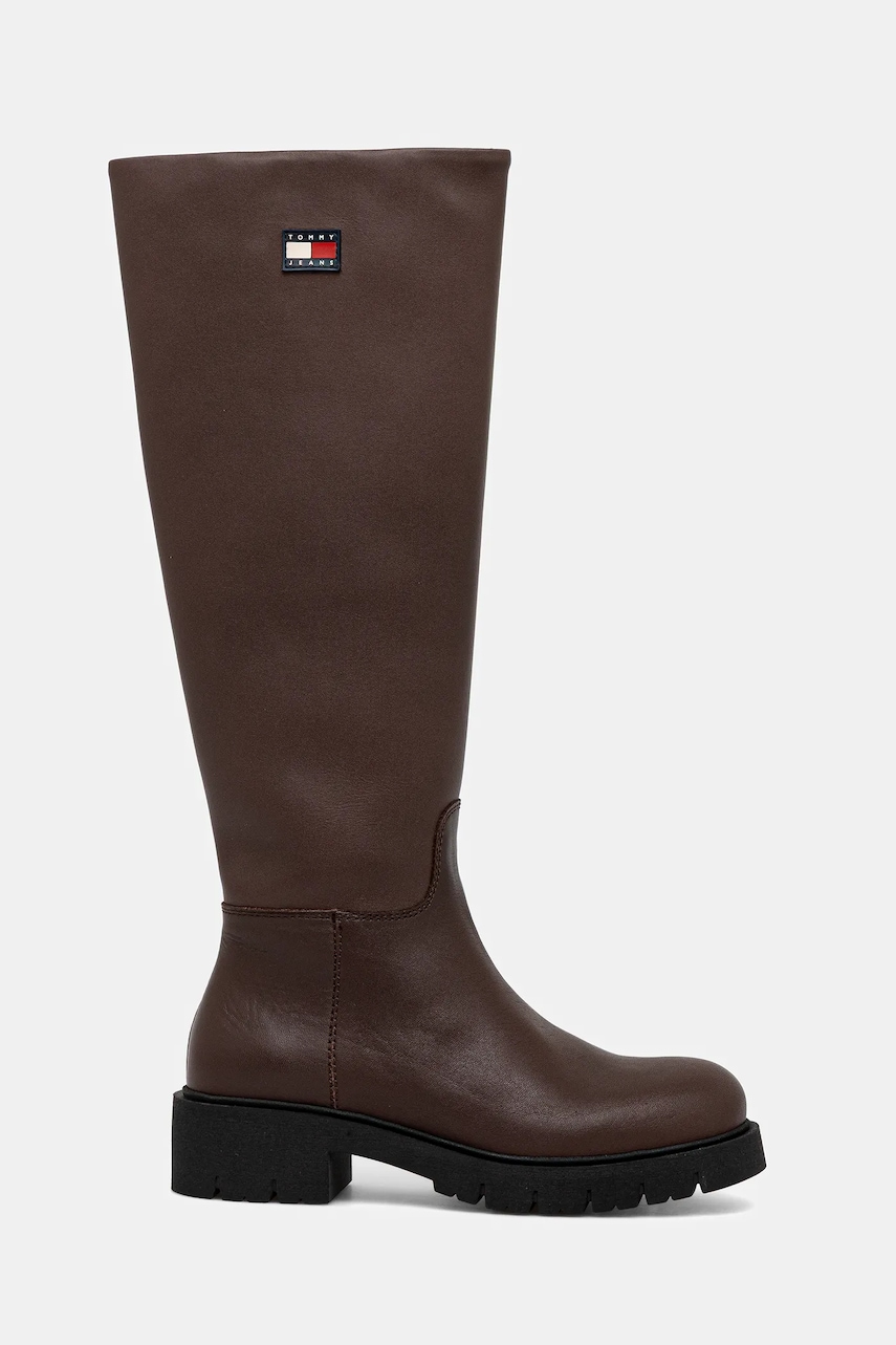 Tommy Jeans kozaki TJW STRETCHY LONG SHAFT damskie kolor brązowy na płaskim obcasie EN0EN02828