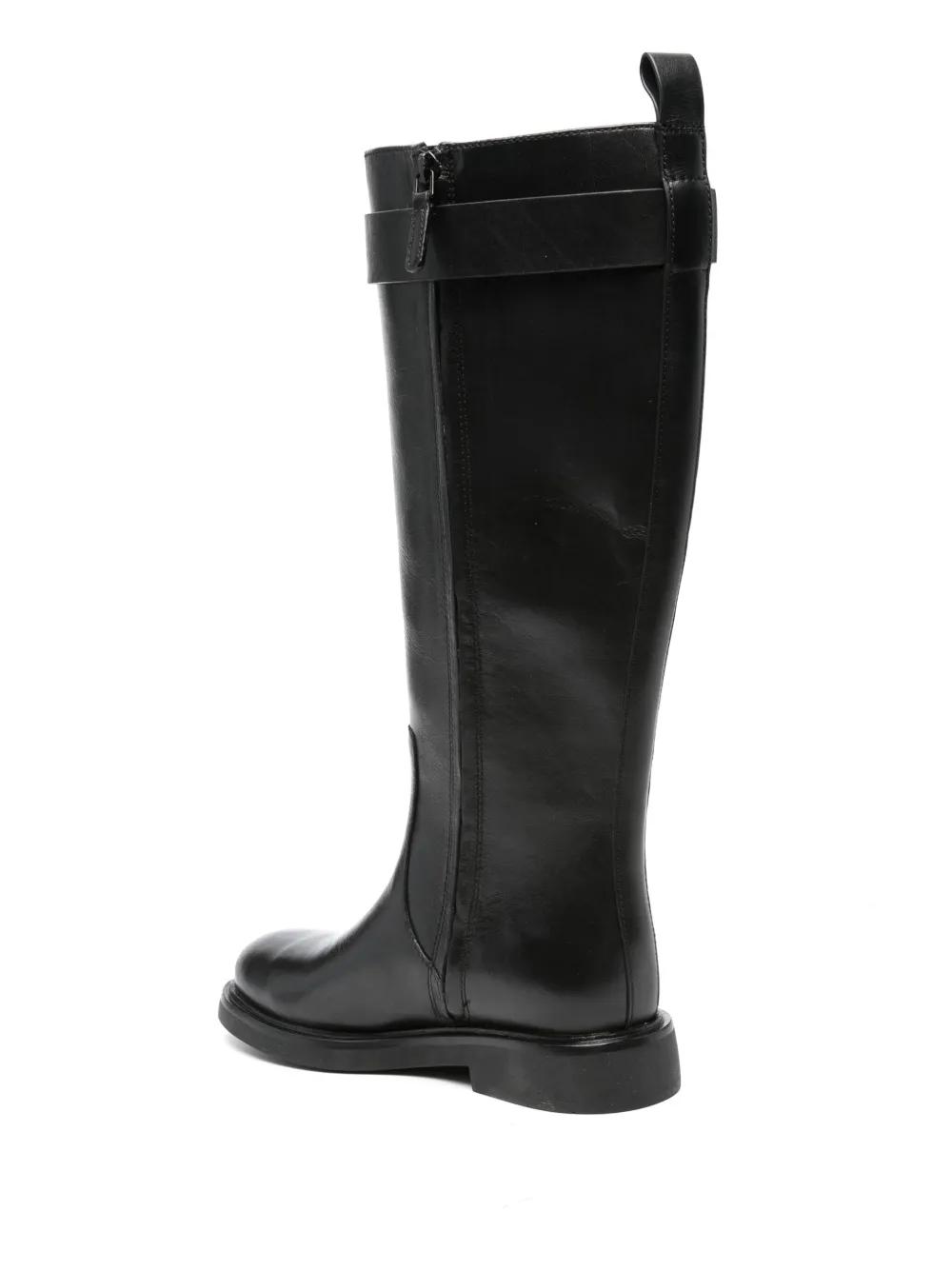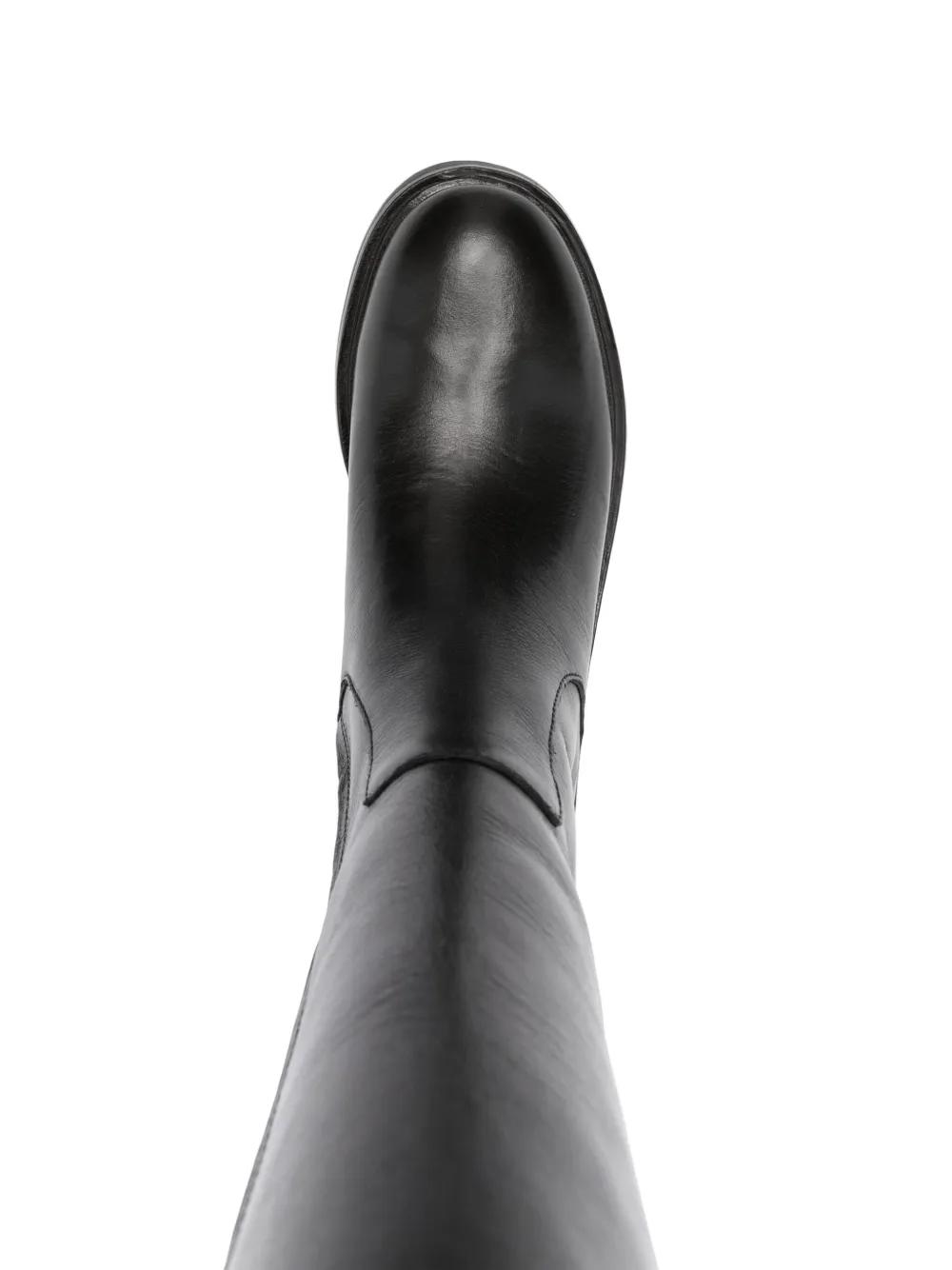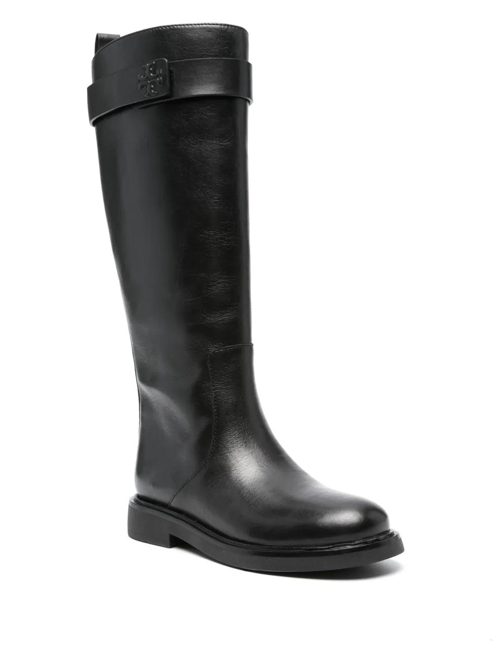 black calf leather signature Double T motif round toe side touch-strap fastening side zip fastening pull-tab at the heel knee-high flat rubber sole