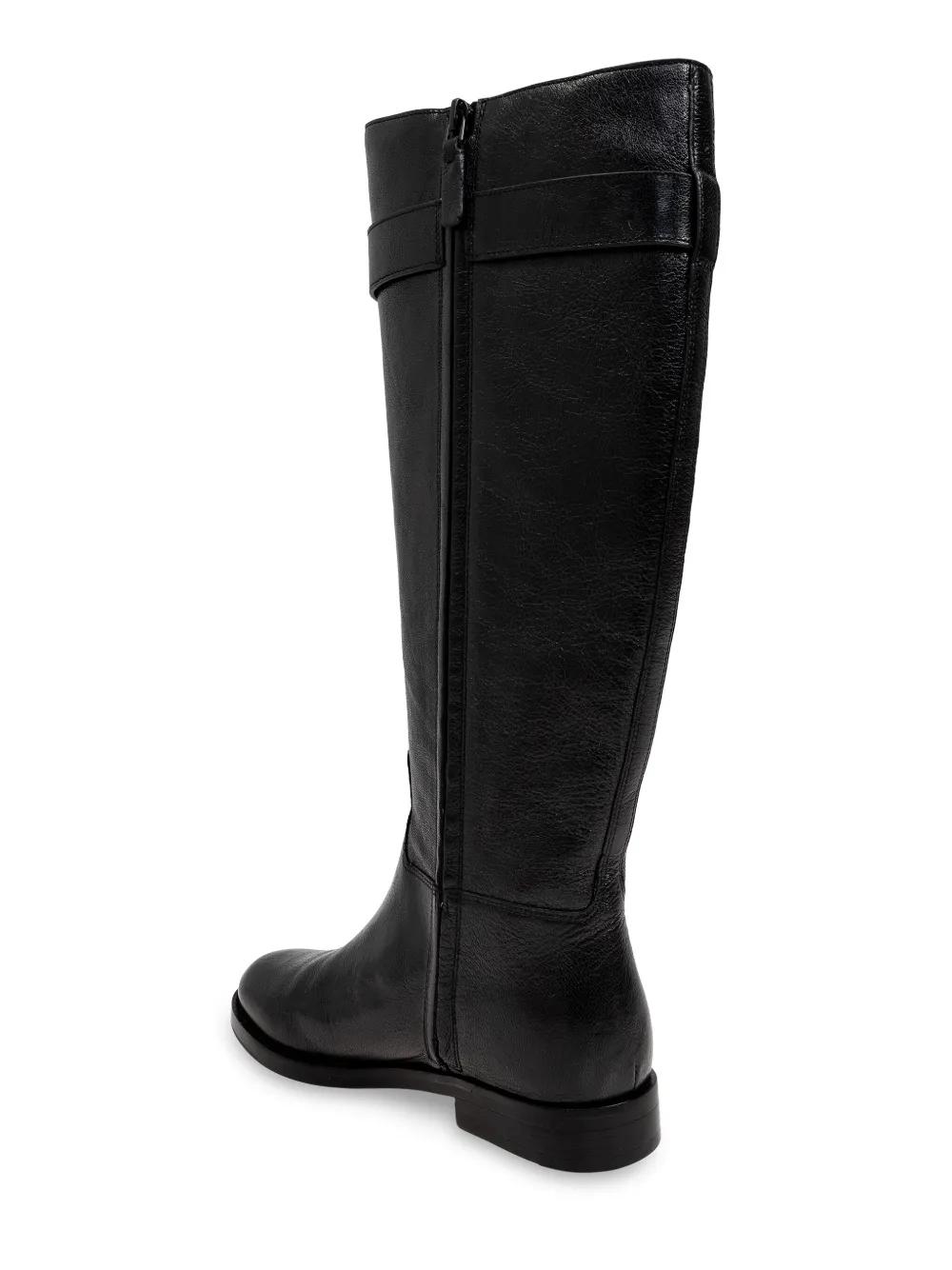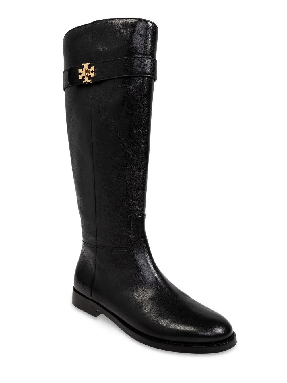 black calf leather side zip fastening signature Double T motif round toe knee-high flat leather sole