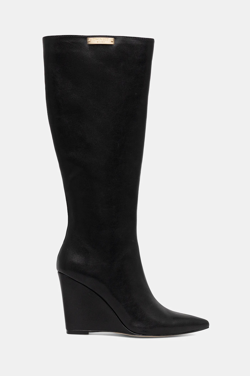 Twinset kozaki damskie kolor czarny na koturnie 252TGT210