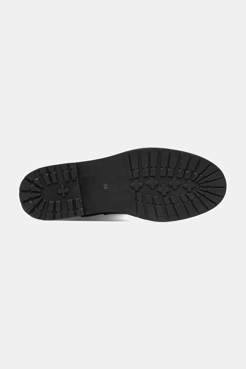 - Usztywniony nosek. - Mocno usztywniony zapiętek stabilizuje piętę i utrzymuje stopę w bucie, tak aby nie wysuwała się podczas ruchu. - Skórzana wkładka jest komfortowa dla stopy i zapobiega odparzeniom, otarciom oraz pojawianiu się nieprzyjemnego zapachu. - Gumowa podeszwa zewnętrzna jest wytrzymała i odporna na uszkodzenia. - Obwód cholewki: 36 cm. - Wysokość cholewki: 39 cm. - Długość wkładki wynosi: 25 cm. - Wymiary podane dla rozmiaru: 38.