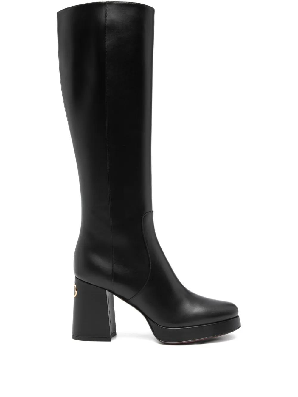 black VLogo Signature on the heel platform sole block heel knee-high zip fastening