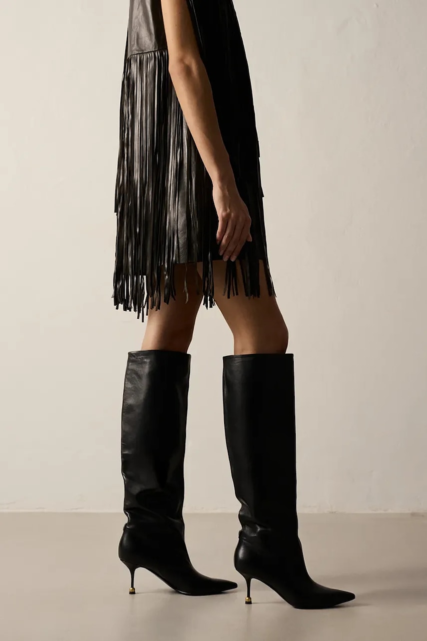 Vanda Novak kozaki skórzane Kaja Deep Black damskie kolor czarny na szpilce
