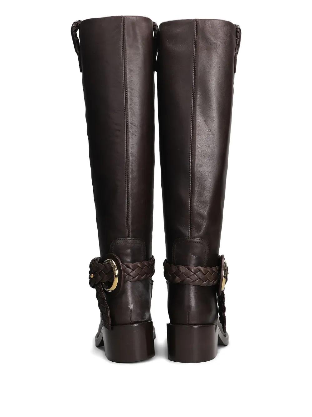 brown braided detail gold-tone hardware block heel round toe pull-on style