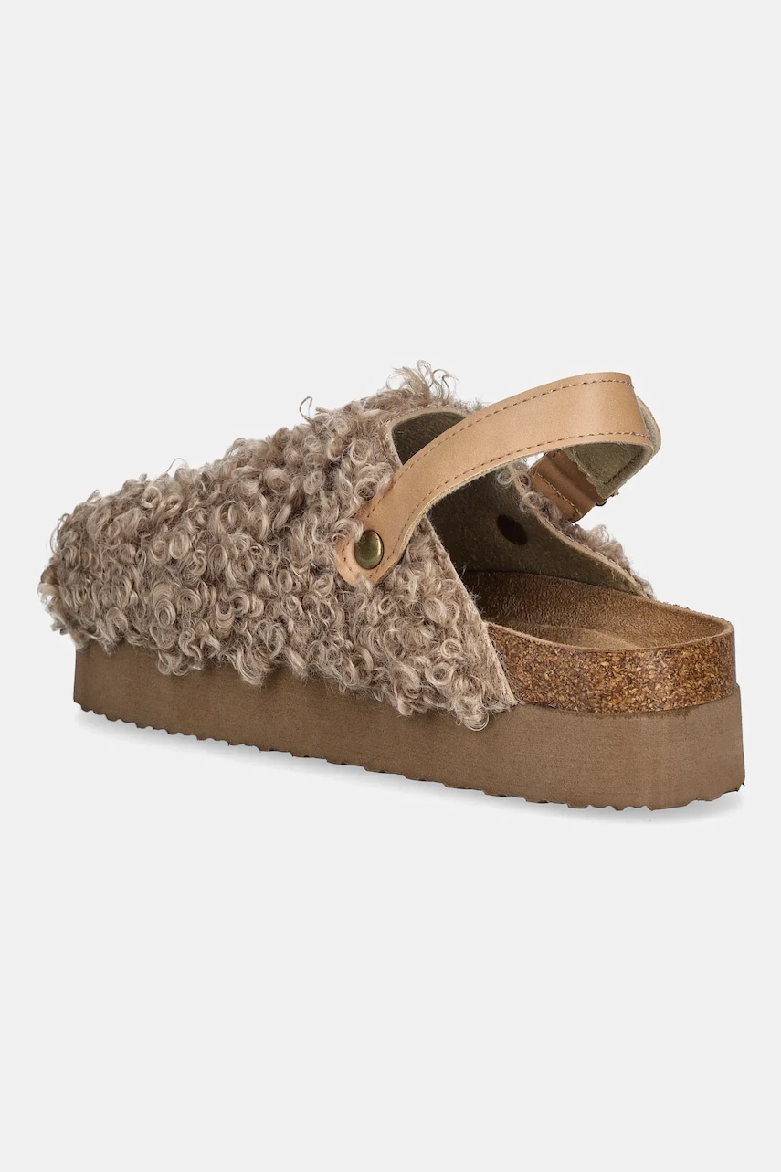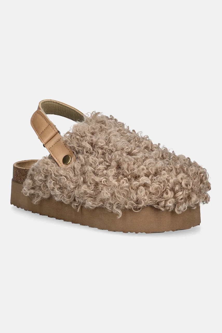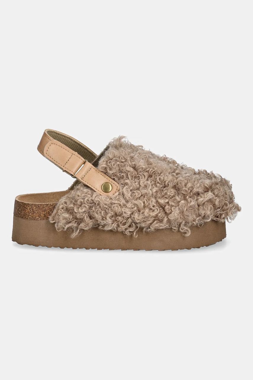 - Model na platformie. - Okrągły, miękki nosek. - Piankowa podeszwa zapewnia uczucie większej miękkości, a także dodatkową amortyzację. - Ruchomy zapiętek umożliwiający noszenie na dwa sposoby. - Komfortowe wnętrze. - Wysokość platformy: 4,5 cm. - Długość wkładki wynosi: 24,5 cm. - Wymiary podane dla rozmiaru: 37.
