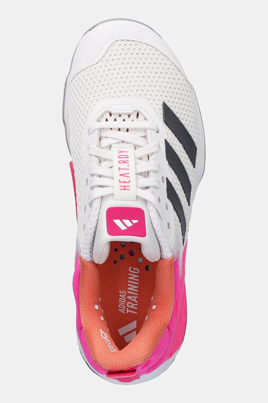 - Cholewka wykonana z oddychającego materiału z technologią HEAT.RDY, pomaga zachować komfort i optymalną cyrkulację powietrza w trakcie aktywności. - Specjalna wyściółka Geofit wokół kołnierza cholewki zapewnia wygodne dopasowanie w kostce i jej stabilizację. - Wzmacniające panele wykonane z TPU umiejscowione na cholewce zapewniają dodatkowe wsparcie i stabilizację. - Płaskie sznurowadła eliminują punkty nacisku na podbicie stopy, dzięki czemu zapewniają dobre dopasowanie oraz komfort noszenia. - Tekstylne wnętrze jest komfortowe dla stopy i ułatwia utrzymanie obuwia w czystości. - Technologia Torsion System 360° wspiera nagłe i dynamiczne ruchy stopy w każdym kierunku. - Podeszwa zewnętrzna Adiwear zapewnia wysoką trwałość, nawet przy intensywnej eksploatacji, a jej strategicznie rozmieszczone wypustki zwiększają przyczepność na trudnym podłożu. - System TRAXION polega na zastosowaniu specjalnie ukształtowanych wypustek w podeszwie buta, zapewniających wysoką przyczepność do podłoża, co chroni przed poślizgiem we wszystkich kierunkach oraz poprawia zwrotność i szybkość ruchu. - Długość wkładki wynosi: 24 cm. - Wymiary podane dla rozmiaru: 38 2/3.