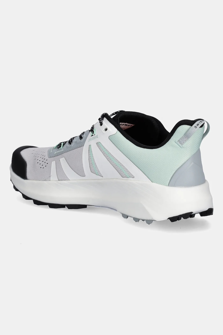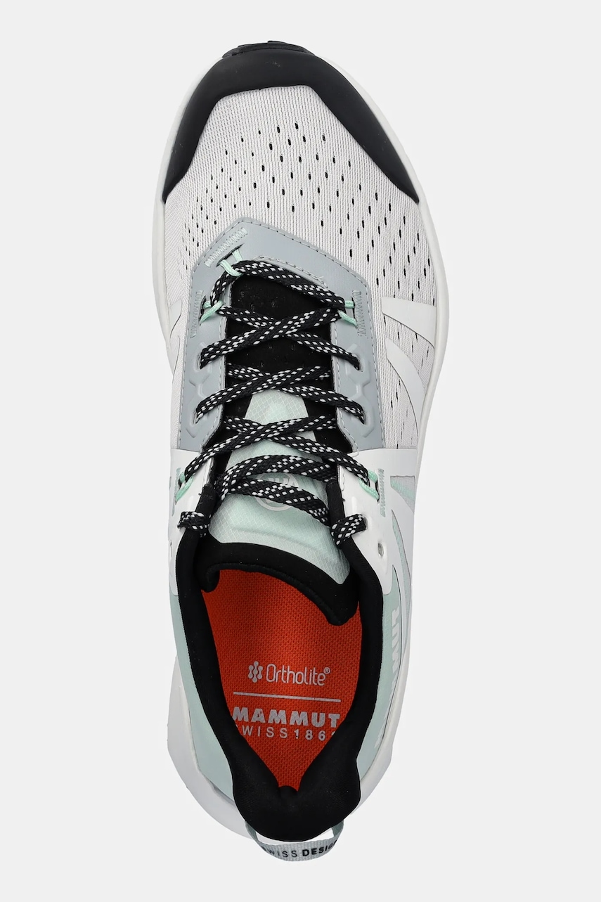 - Produkt wyprodukowany zgodnie z założeniami Fair Wear Foundation, organizacji zrzeszającej marki odzieżowe tworzące produkty w bardziej zrównoważony i etyczny sposób. Produkty oznaczone znakiem Fair Wear powstały w fabrykach, które pozytywnie przeszły zewnętrzny audyt i zapewniają pracownikom odpowiednie warunki pracy oraz wynagrodzenie. - Lekka, siateczkowa cholewka utrzymuje odpowiedni poziom przewiewności i oddychalności. - Zgrzewane elementy syntetyczne na cholewce zwiększają jej trwałość i dodatkowo wspierają stopę. - Wstawka wzmacniająca na nosku buta dodatkowo chroni palce. - Lekka, specjalnie wyprofilowana wkładka z systemem Ortholite® jest niezwykle miękka i sprężysta, dzięki czemu dopasowuje się do stopy, zachowuje na dłużej swoją pierwotną grubość i dobrze amortyzuje. Piankowy materiał, z którego została wykonana, zapewnia optymalną oddychalność i wykazuje wysokie właściwości antybakteryjne, zapobiegając powstawaniu bakterii, grzybów i nieprzyjemnych zapachów. - Miękka wyściółka, wykonana z materiału tekstylnego, zapobiega podrażnieniom i zapewnia wysoki komfort noszenia. - Pętelka z tyłu ułatwia wsunięcie buta na stopę oraz pomaga w jego ściąganiu. - Podeszwa środkowa wykonana z lekkiej, sprężystej pianki EVA stworzonej z tworzywa sztucznego, zapewnia optymalną amortyzację w trakcie aktywności. - Podeszwa zewnętrzna Mammut Swiss Design zapewnia doskonałą trakcję i responsywność podczas ruchu.