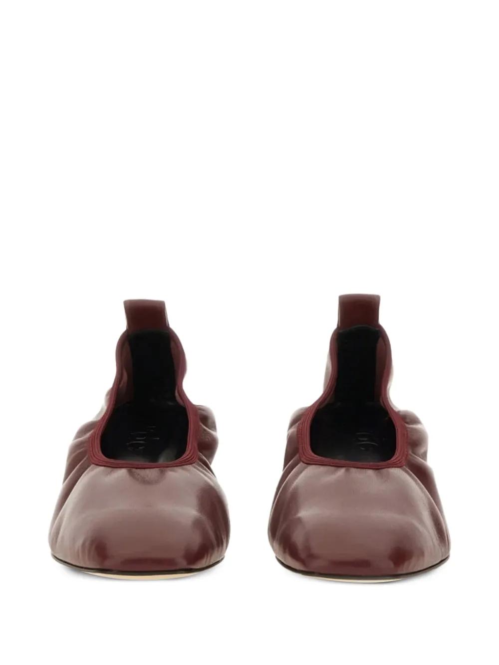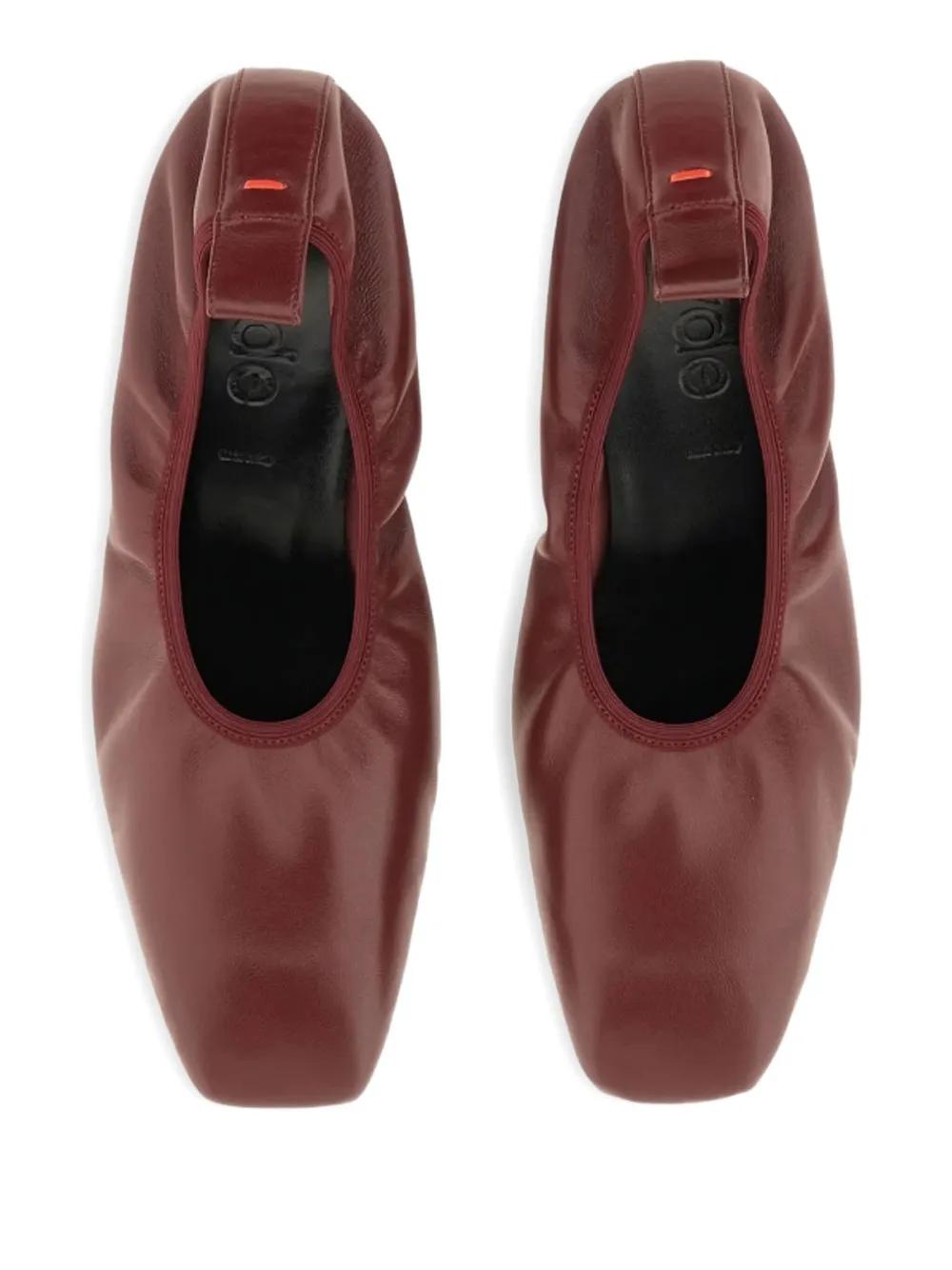 burgundy red leather block heel round toe elasticated trim pull-tab at rear