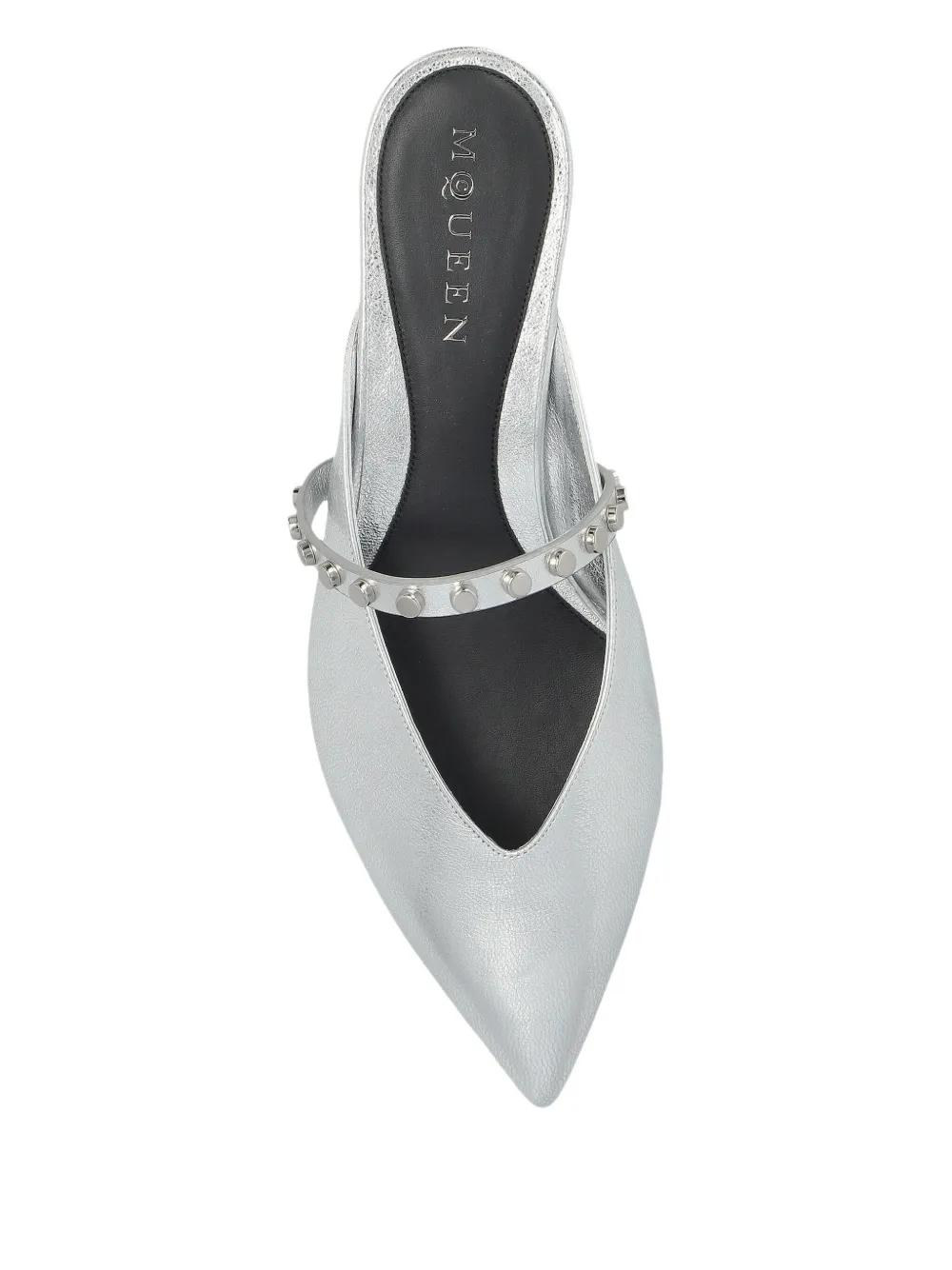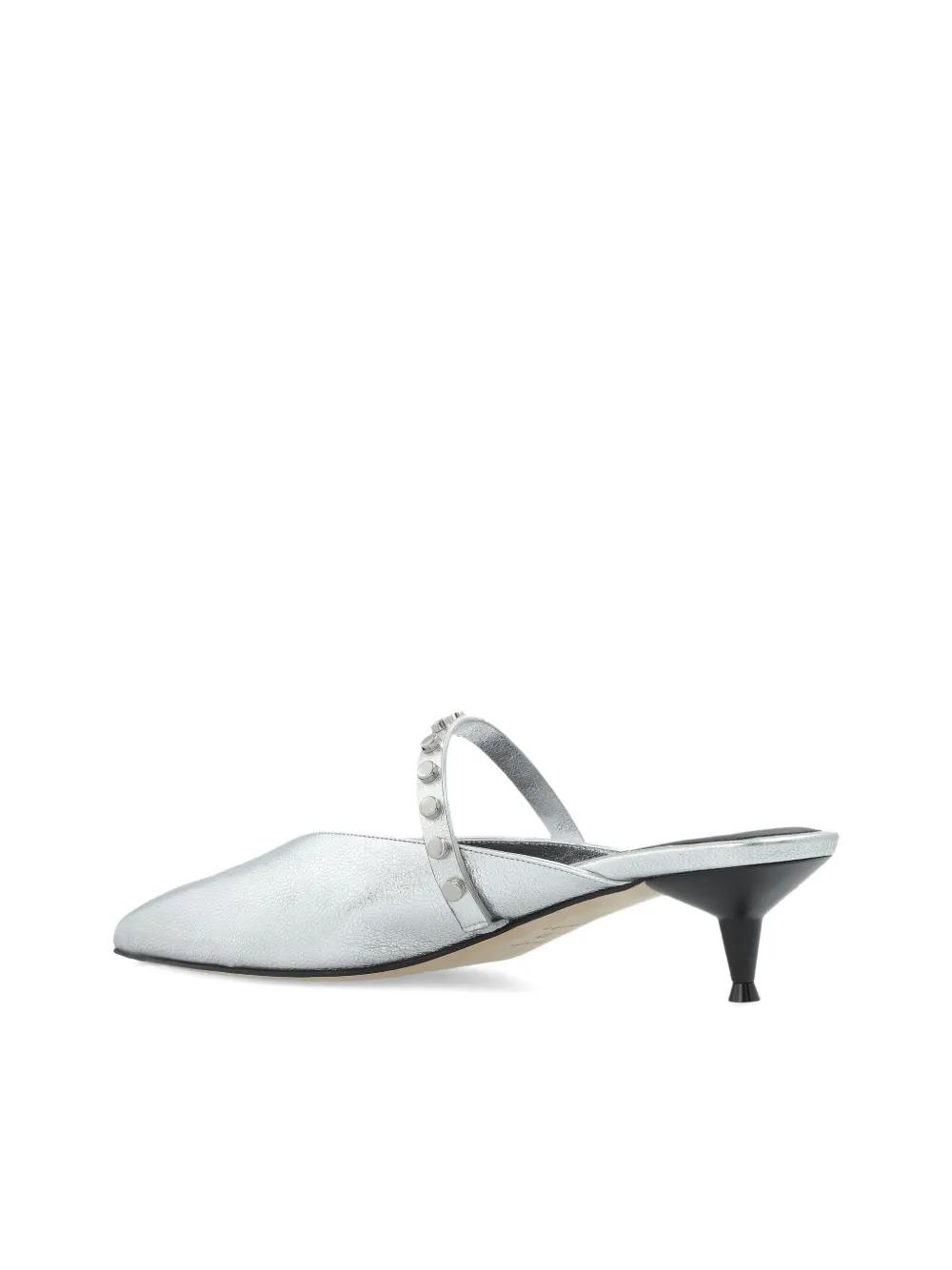 silver-tone slip-on style branded insole pointed toe kitten heel