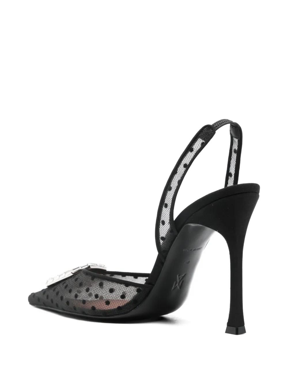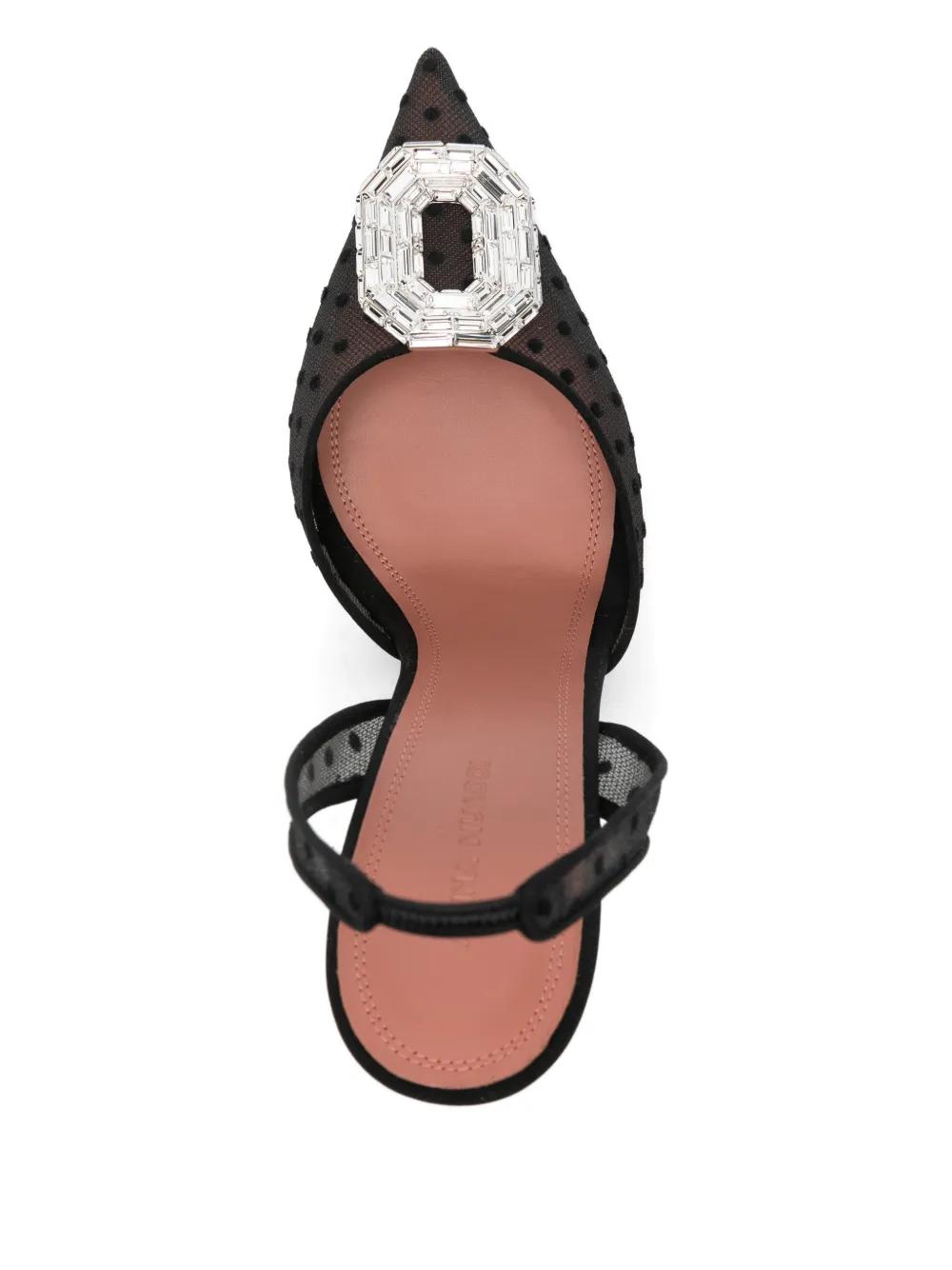Amina Muaddi 110mm Camelia lace polka-dot sling pump - Black