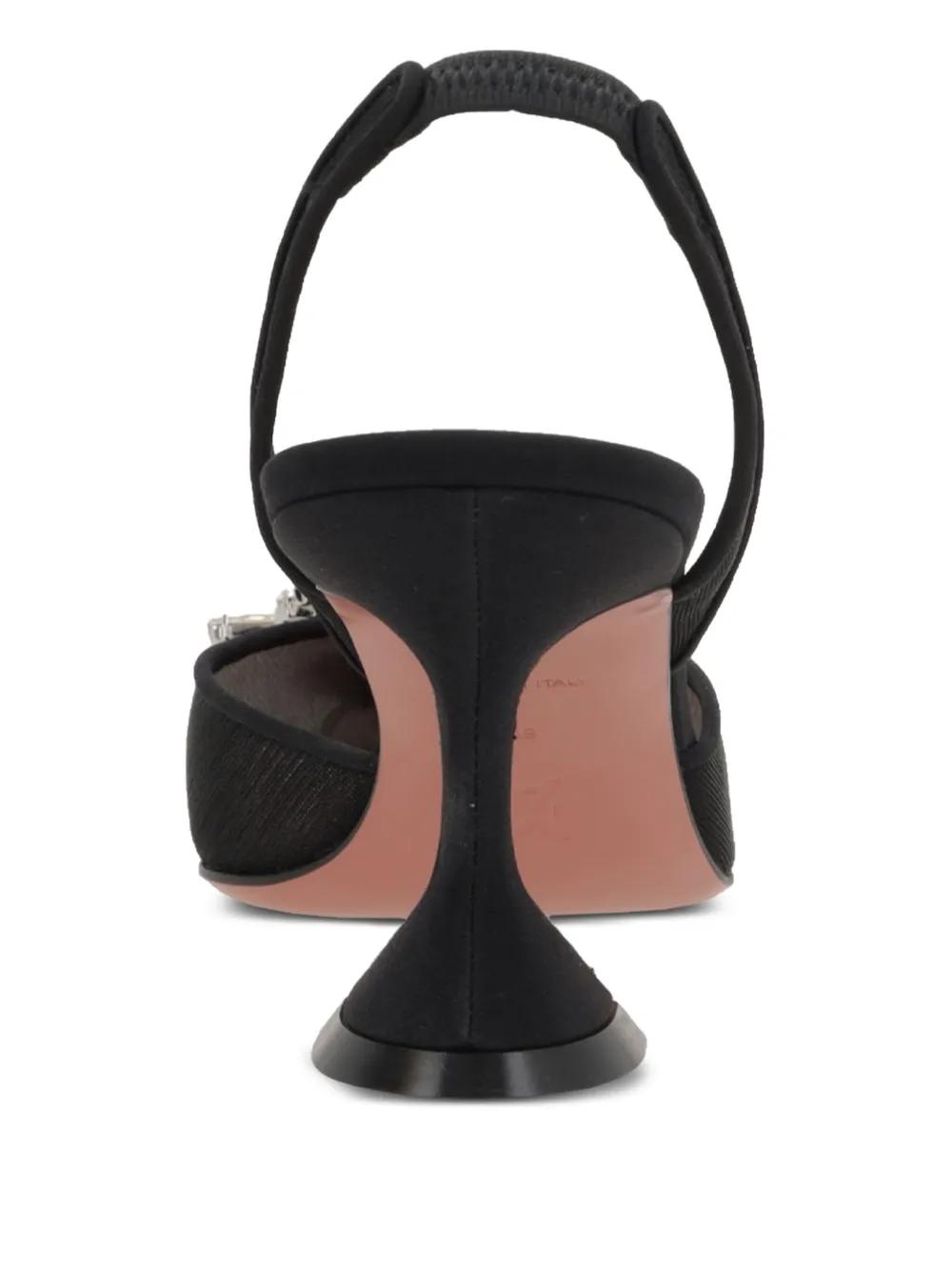 black elasticated slingback strap mid tapered heel pointed toe leather sole