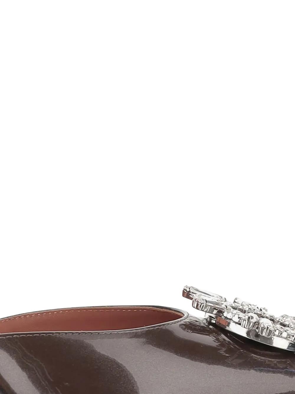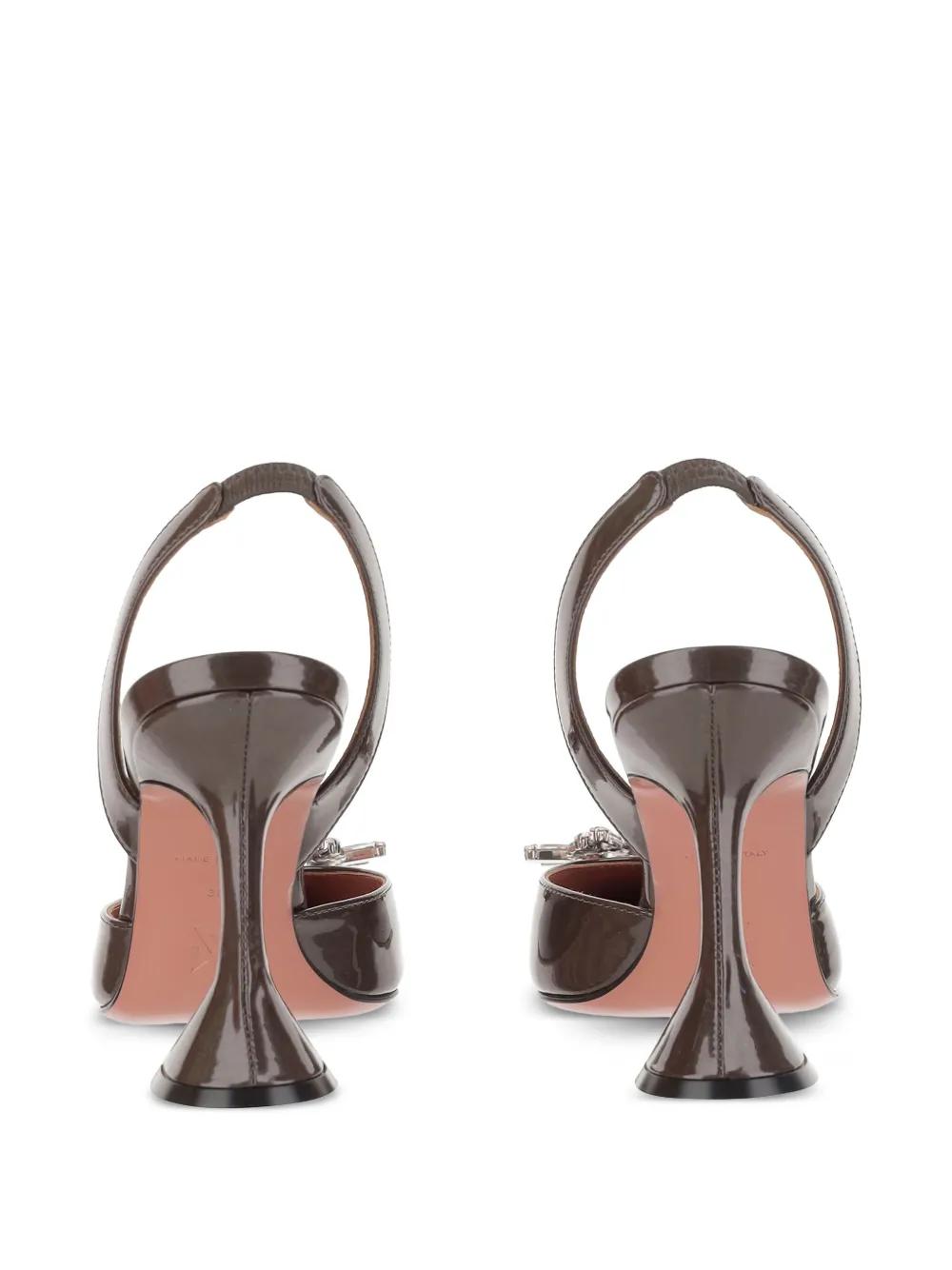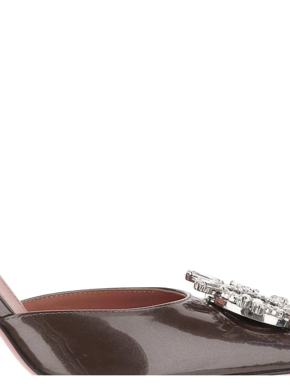 brown patent leather slingback design high heel crystal embellishment pointed toe