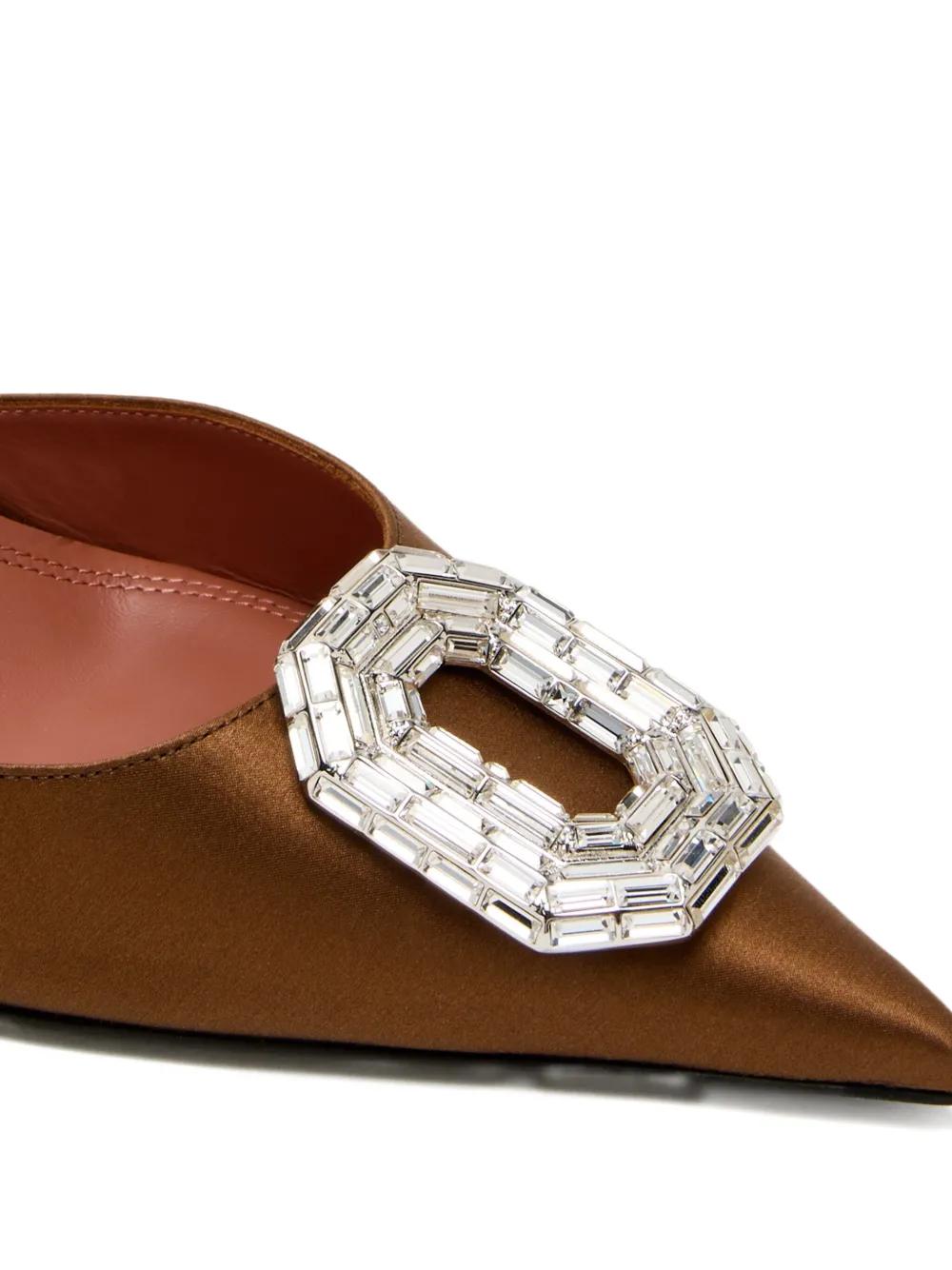 brown crystal embellishment stiletto heel slingback strap pointed toe leather lining