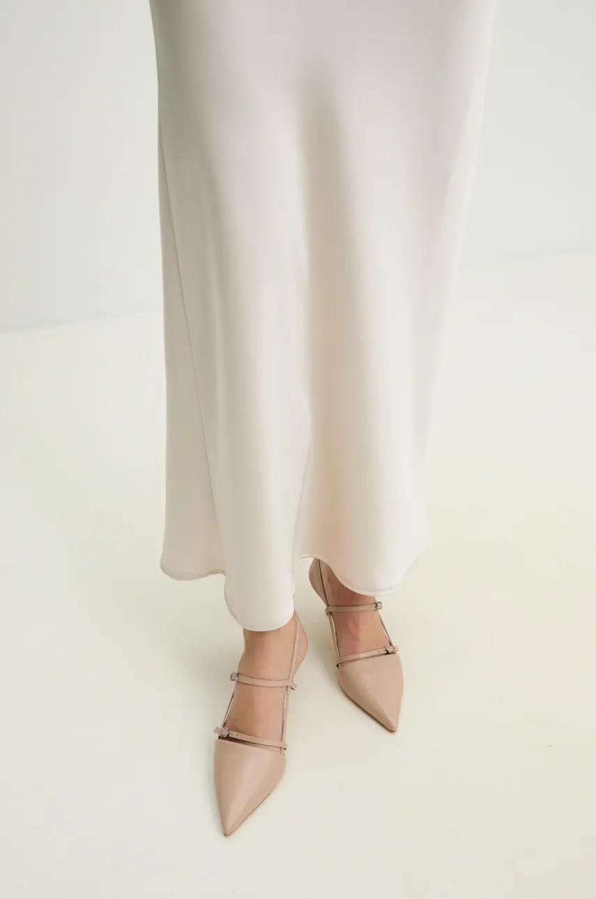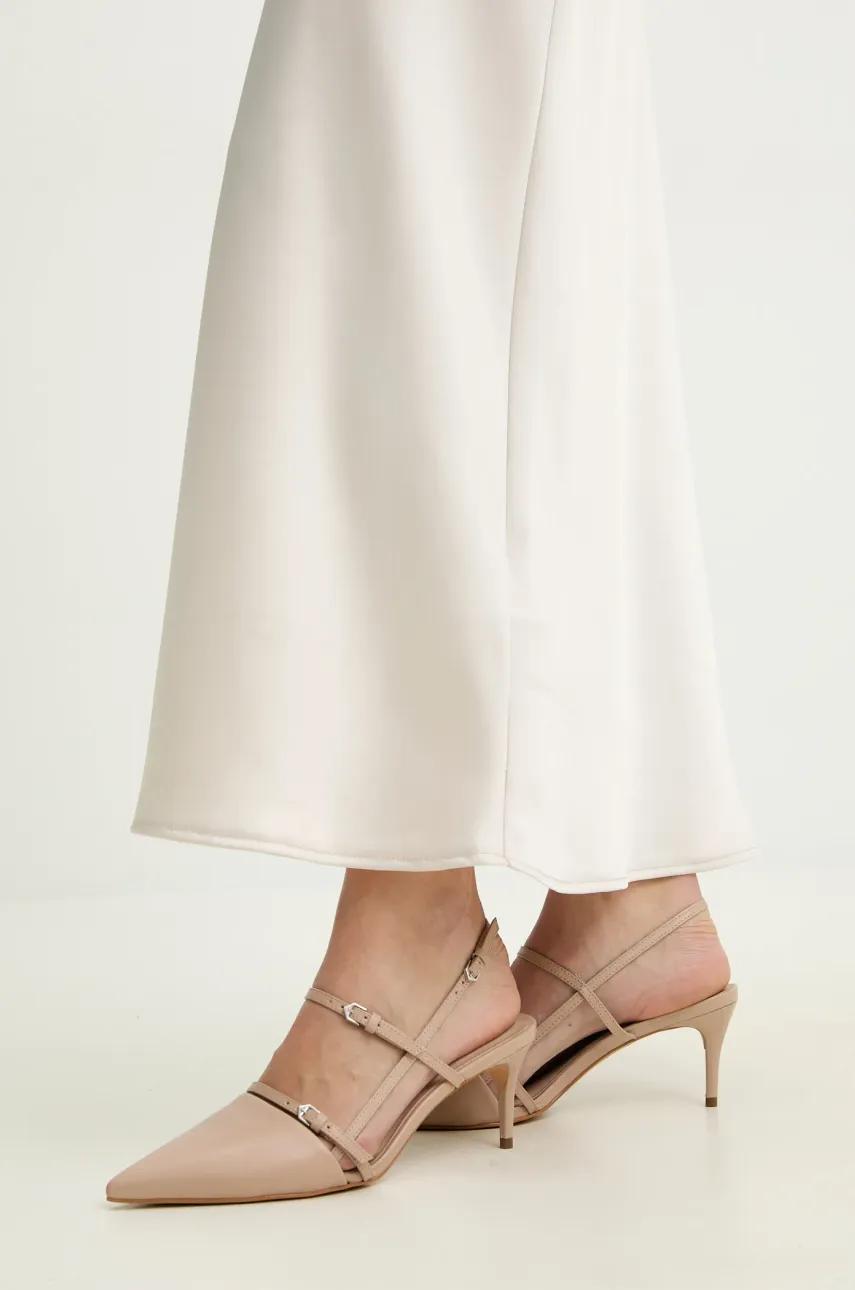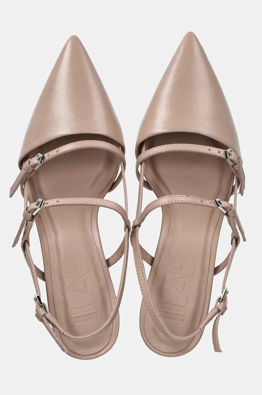 - Spiczasty, usztywniony nosek. - Zapięcie na klamry ze szpilką, które umożliwiają indywidualne dopasowanie. - Model ze skórzanym wnętrzem, które jest komfortowe dla stopy i zapobiega odparzeniom, otarciom oraz pojawianiu się nieprzyjemnego zapachu. - Wysokość obcasa: 6 cm.