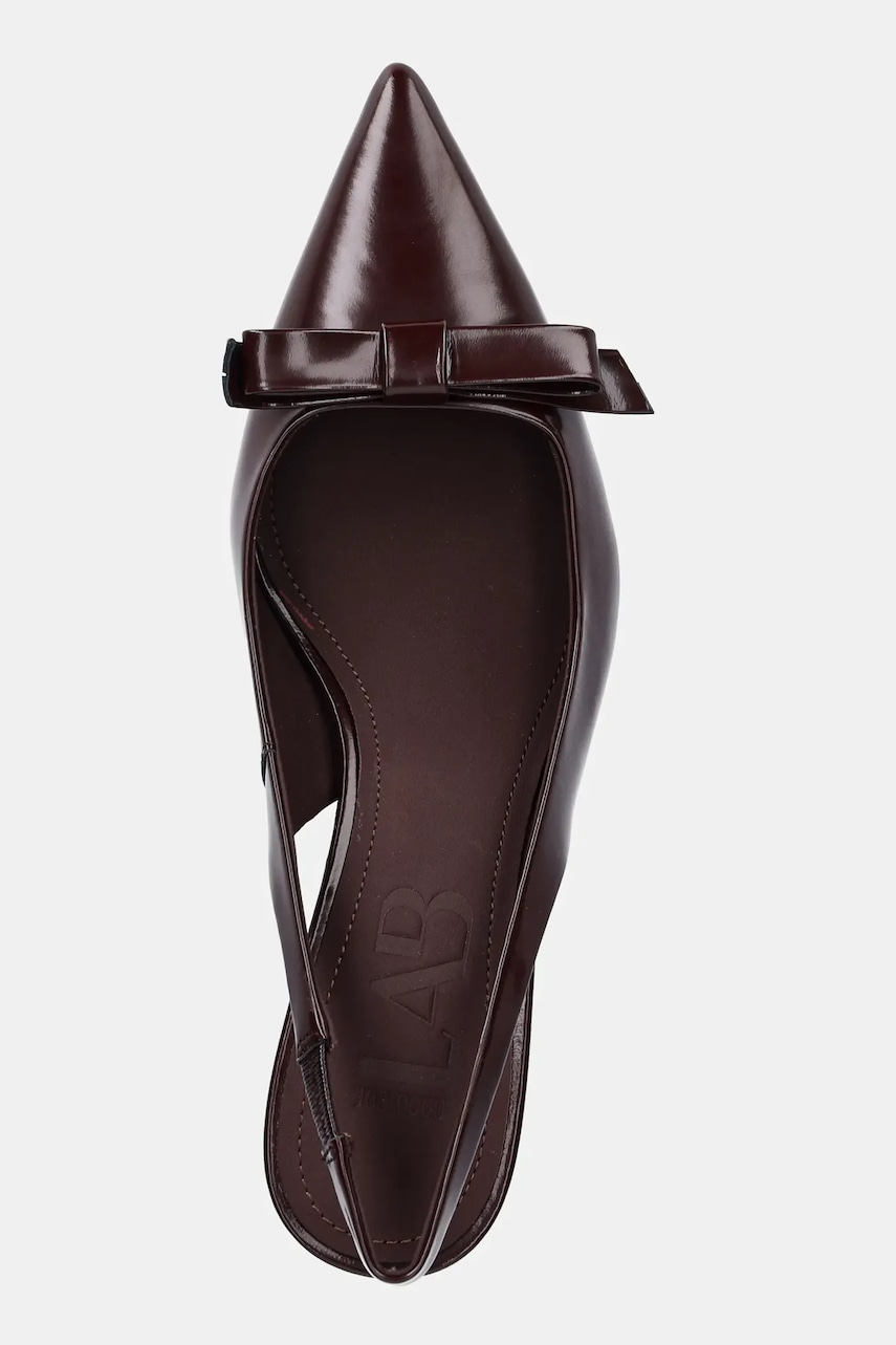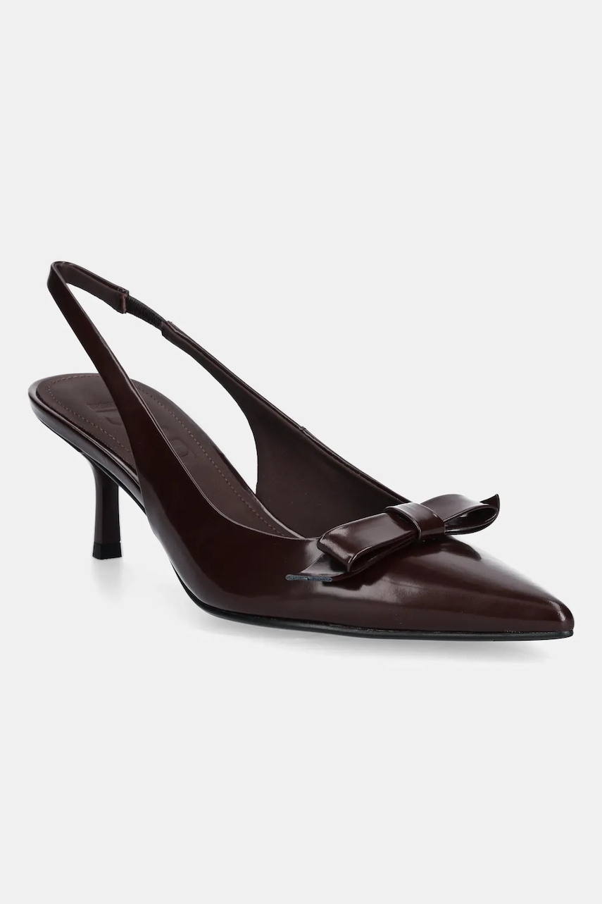 - Spiczasty, lekko usztywniony nosek. - Model z odkrytą piętą. - Model na obcasie typu szpilka. - Model ze skórzanym wnętrzem, które jest komfortowe dla stopy i zapobiega odparzeniom, otarciom oraz pojawianiu się nieprzyjemnego zapachu. - Gumowa podeszwa zewnętrzna jest wytrzymała i odporna na uszkodzenia. - Długość wkładki wynosi: 24,5 cm. - Wysokość obcasa: 7 cm. - Wymiary podane dla rozmiaru: 39.