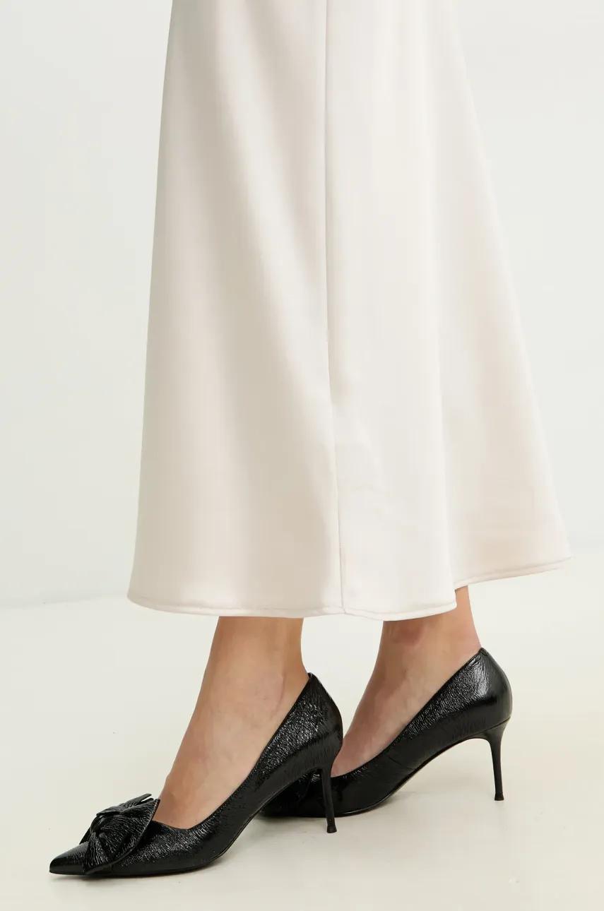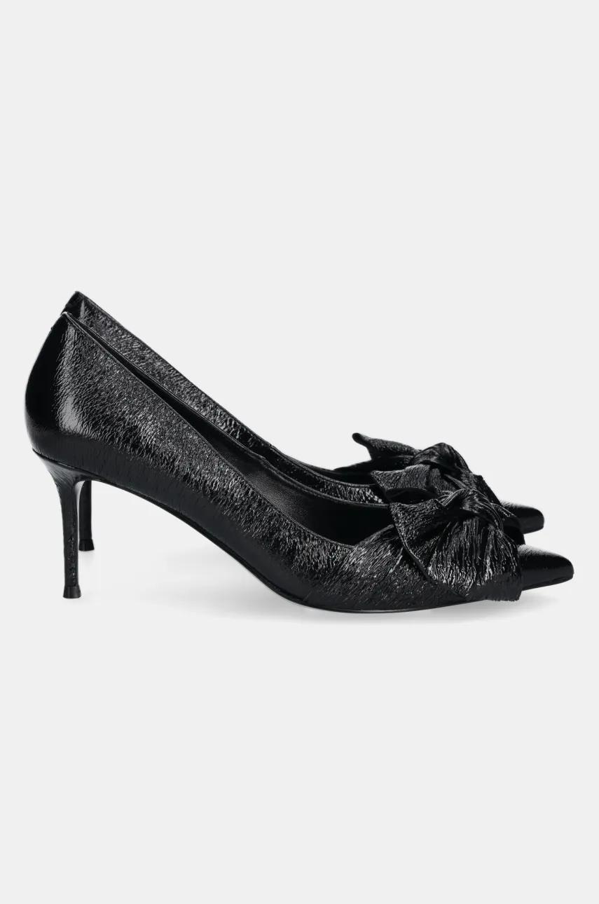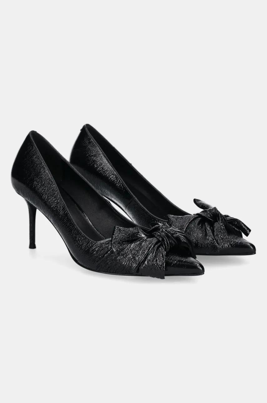 - Spiczasty, usztywniony nosek. - Mocno usztywniony zapiętek stabilizuje piętę i utrzymuje stopę w bucie, tak aby nie wysuwała się podczas ruchu. - Model ze skórzanym wnętrzem, które jest komfortowe dla stopy i zapobiega odparzeniom, otarciom oraz pojawianiu się nieprzyjemnego zapachu. - Model na obcasie typu szpilka. - Wysokość obcasa: 7,5 cm.