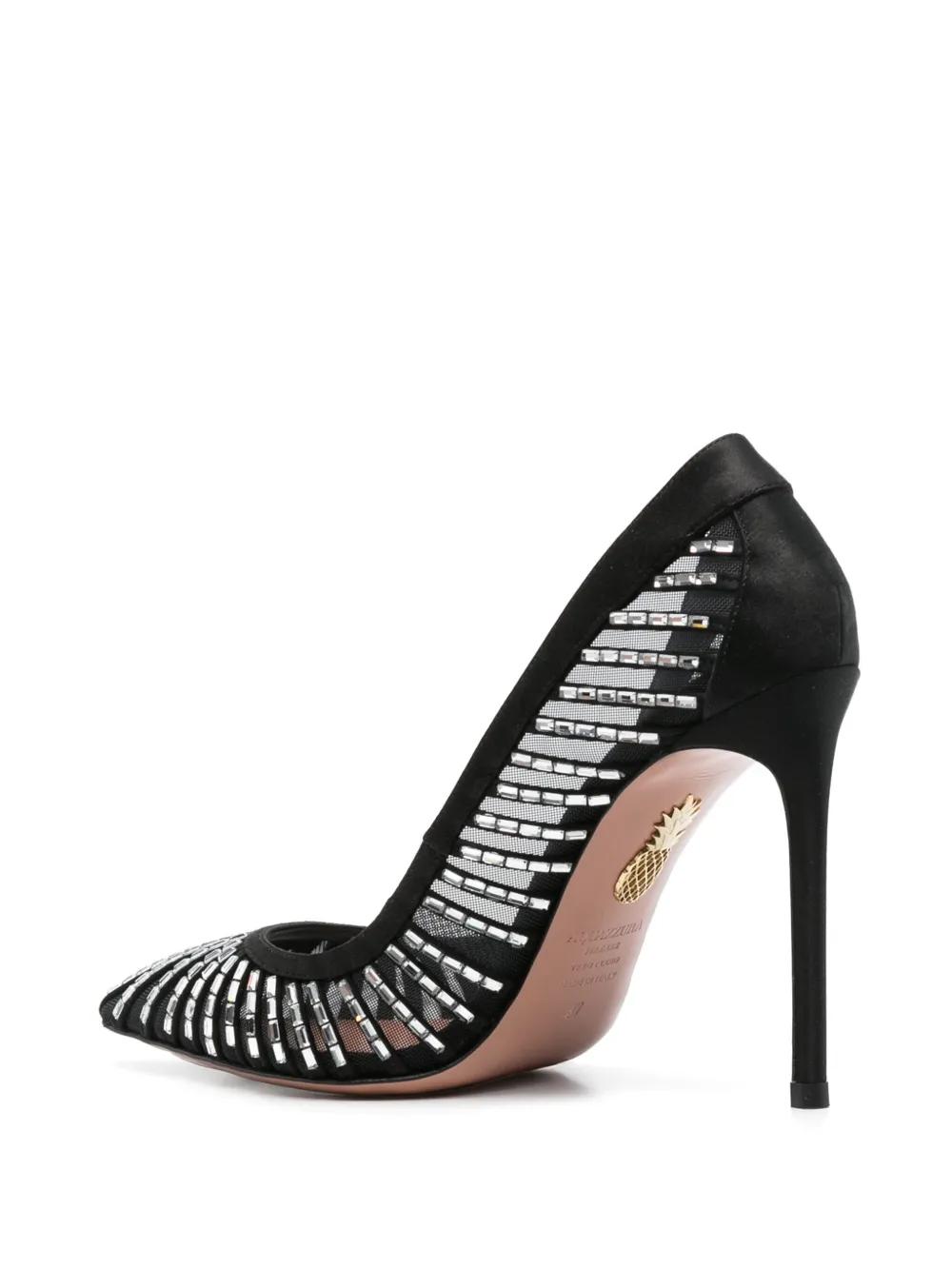 black slip-on style high stiletto heel crystal embellishment branded insole