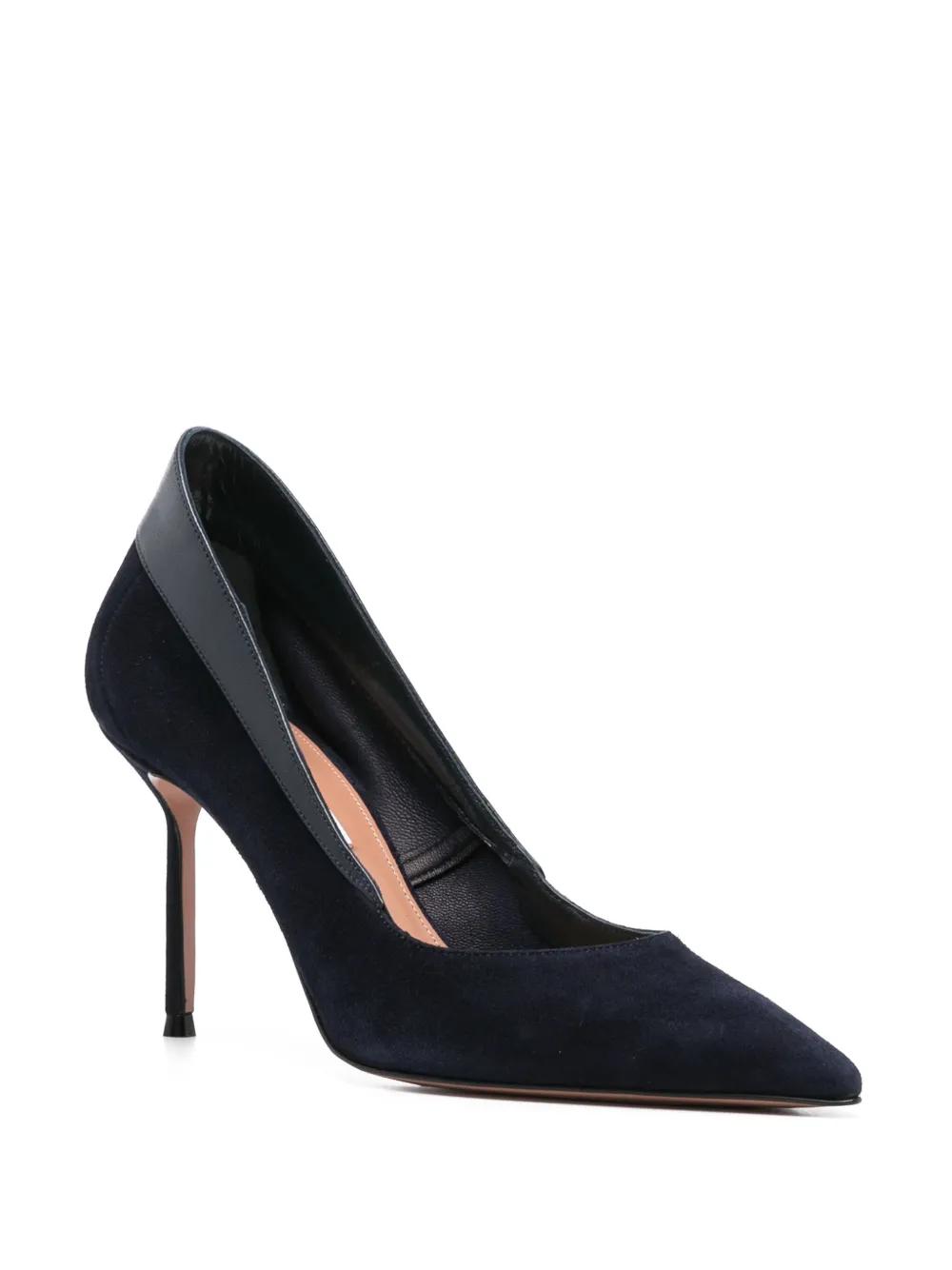 midnight blue contrasting panel detail branded footbed high stiletto heel