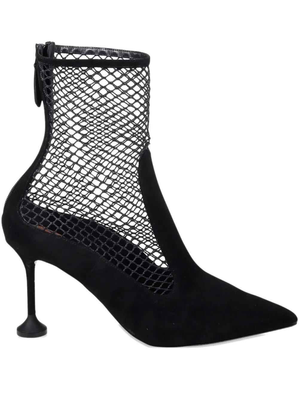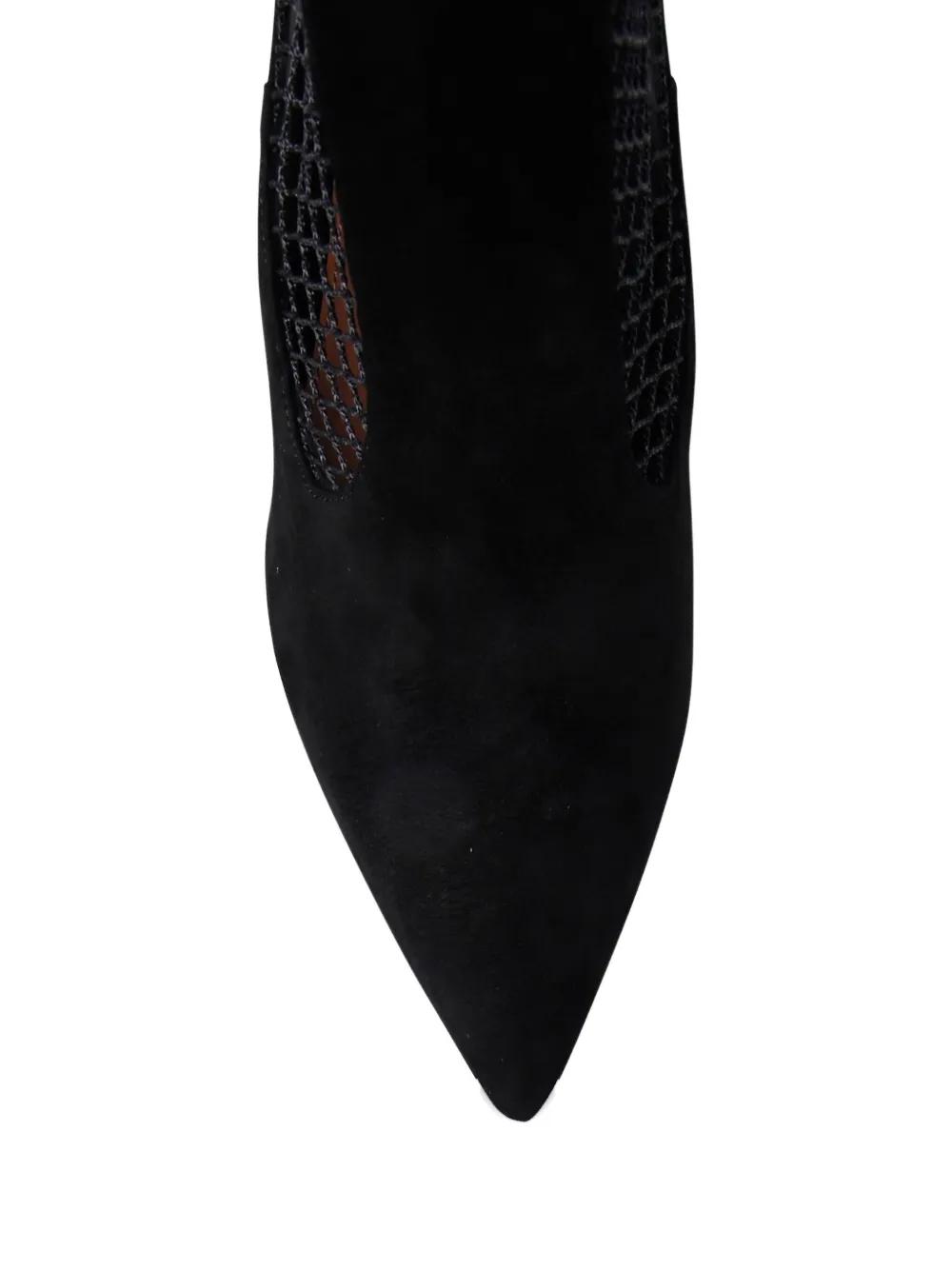 black suede upper mesh insert pointed toe stiletto heel back-zip fastening
