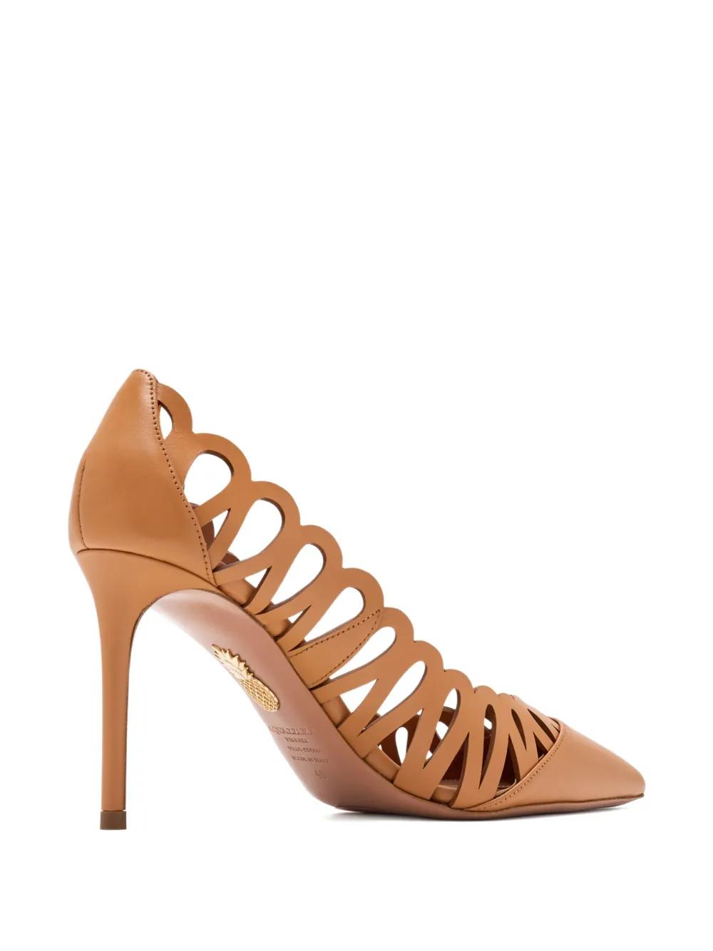 Aquazzura 85mm Peep scalloped-cut pumps - Brown