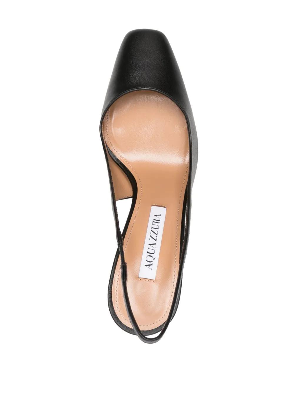 black calf leather square toe slingback strap branded leather insole 100mm high sculpted heel