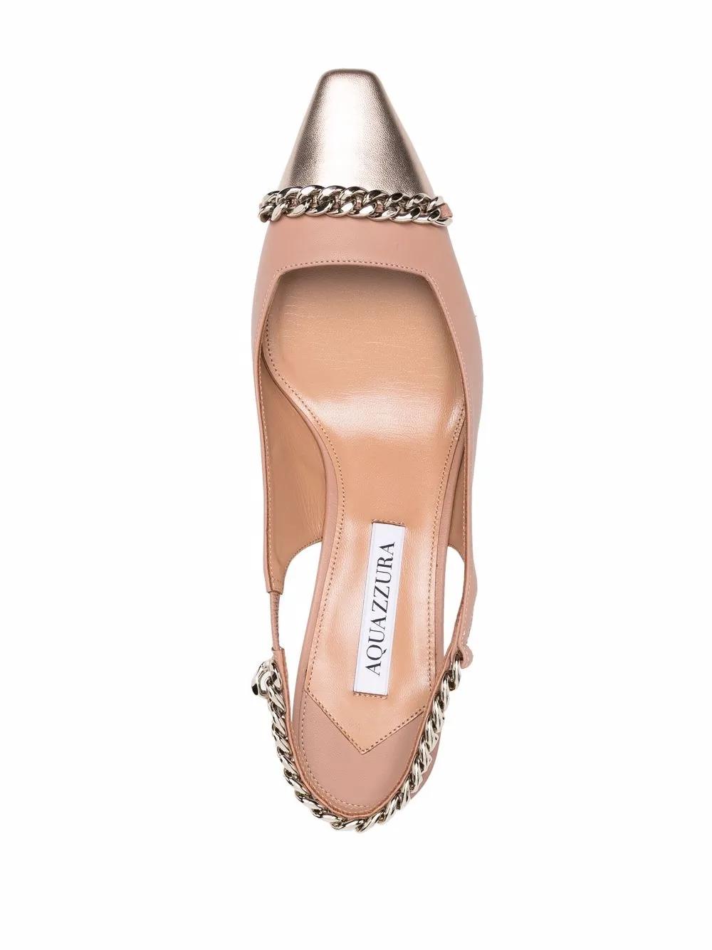 powder pink leather panelled design branded insole chain-link detailing contrasting toecap slingback strap slip-on style