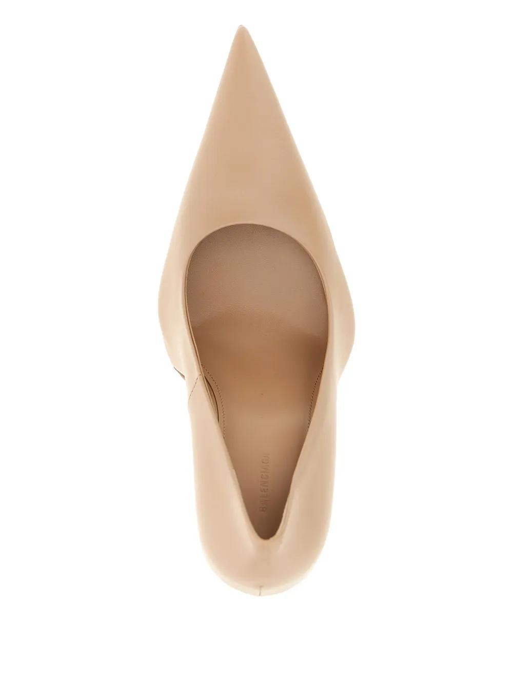 beige calf leather knife heel leather sole elongated pointed toe