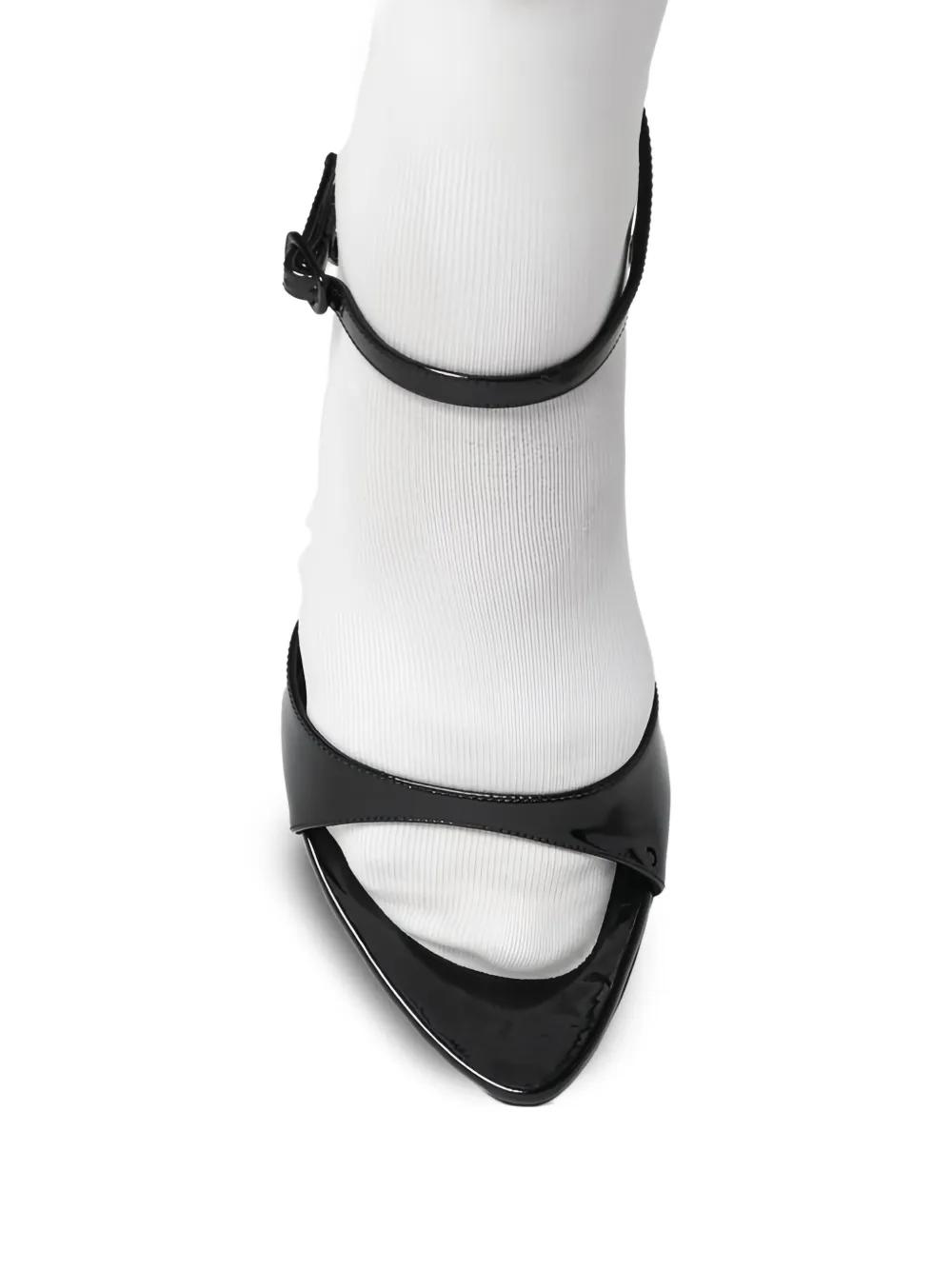 black strap buckle fastening pointed toe stiletto heel logo detail
