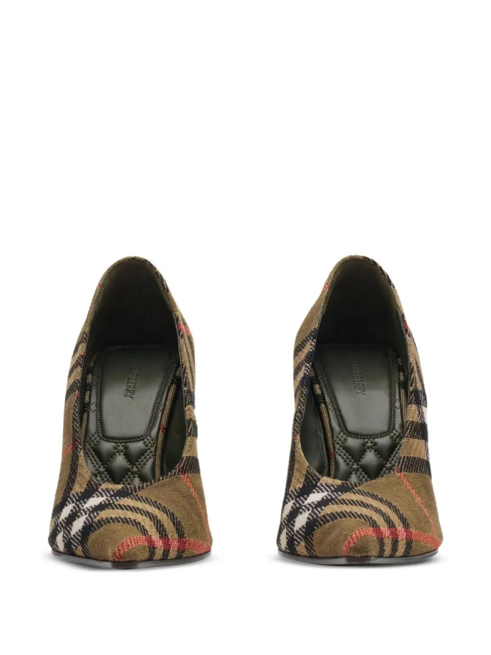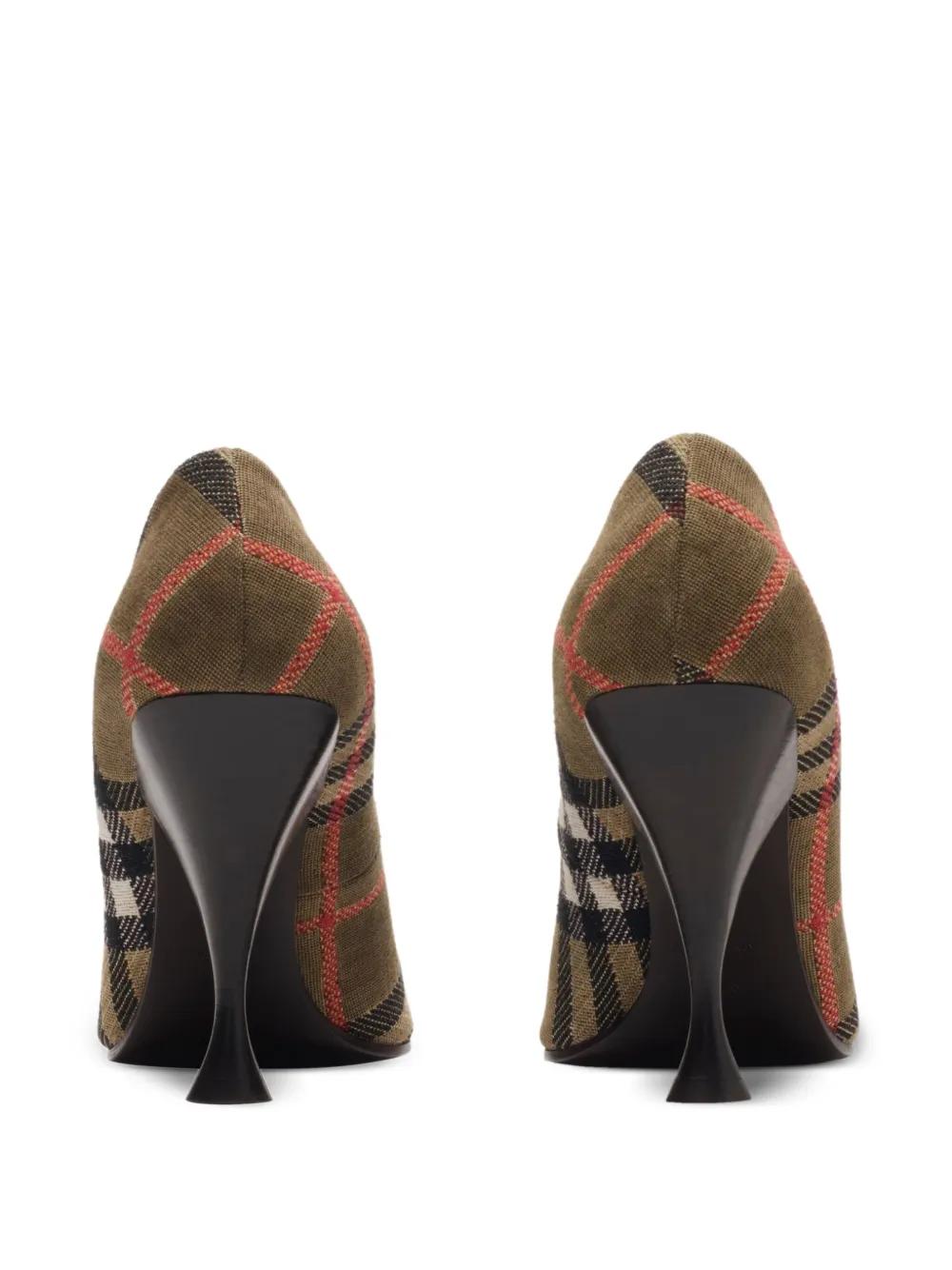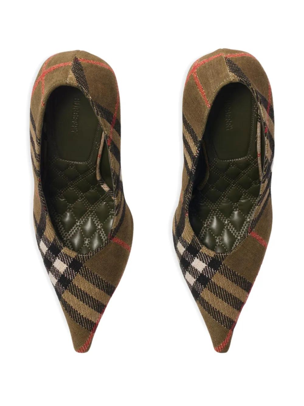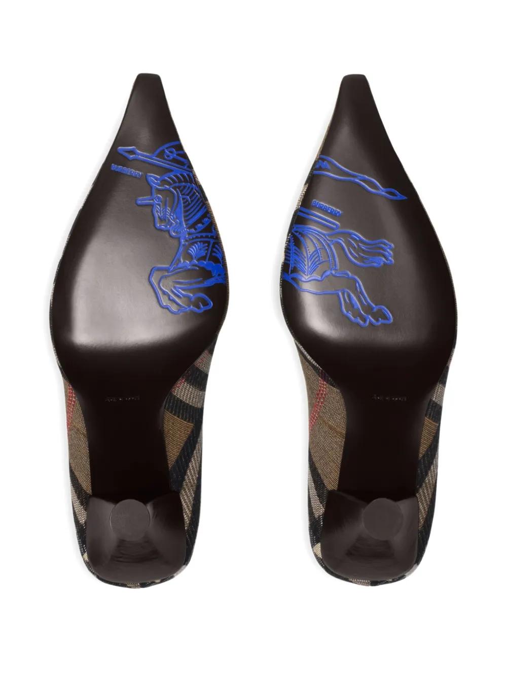 brown check pattern pointed toe sculpted heel leather insole equestrian knight design sole