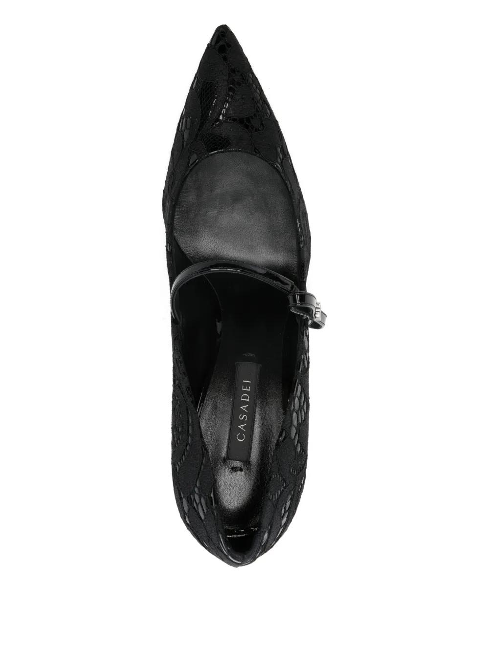 Casadei 80mm lace-detail pointed-toe pumps - Black