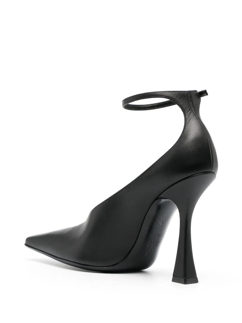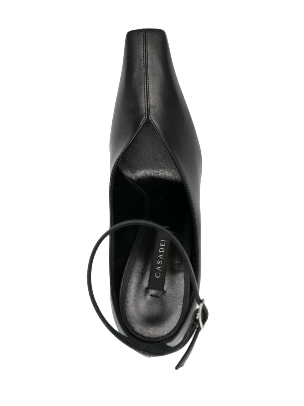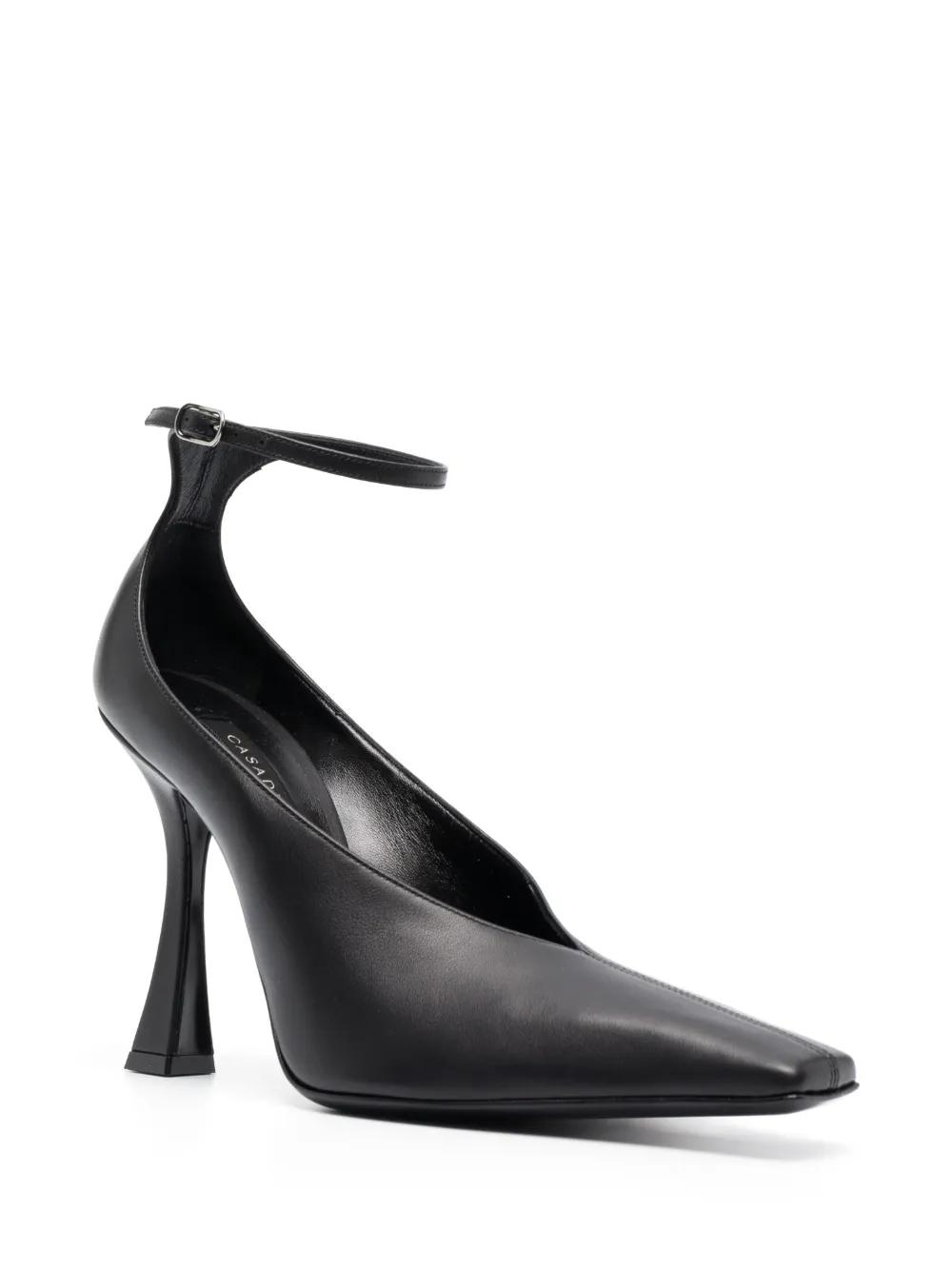 black calf leather tonal stitching square toe buckle-fastening ankle strap branded leather insole 110mm sculpted heel leather outsole