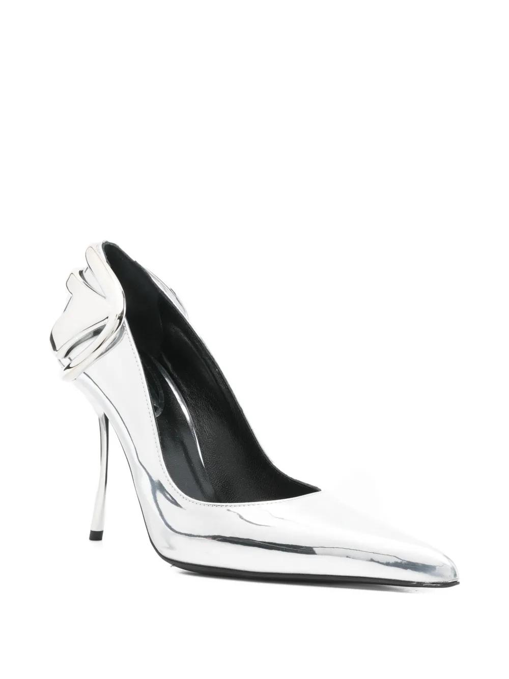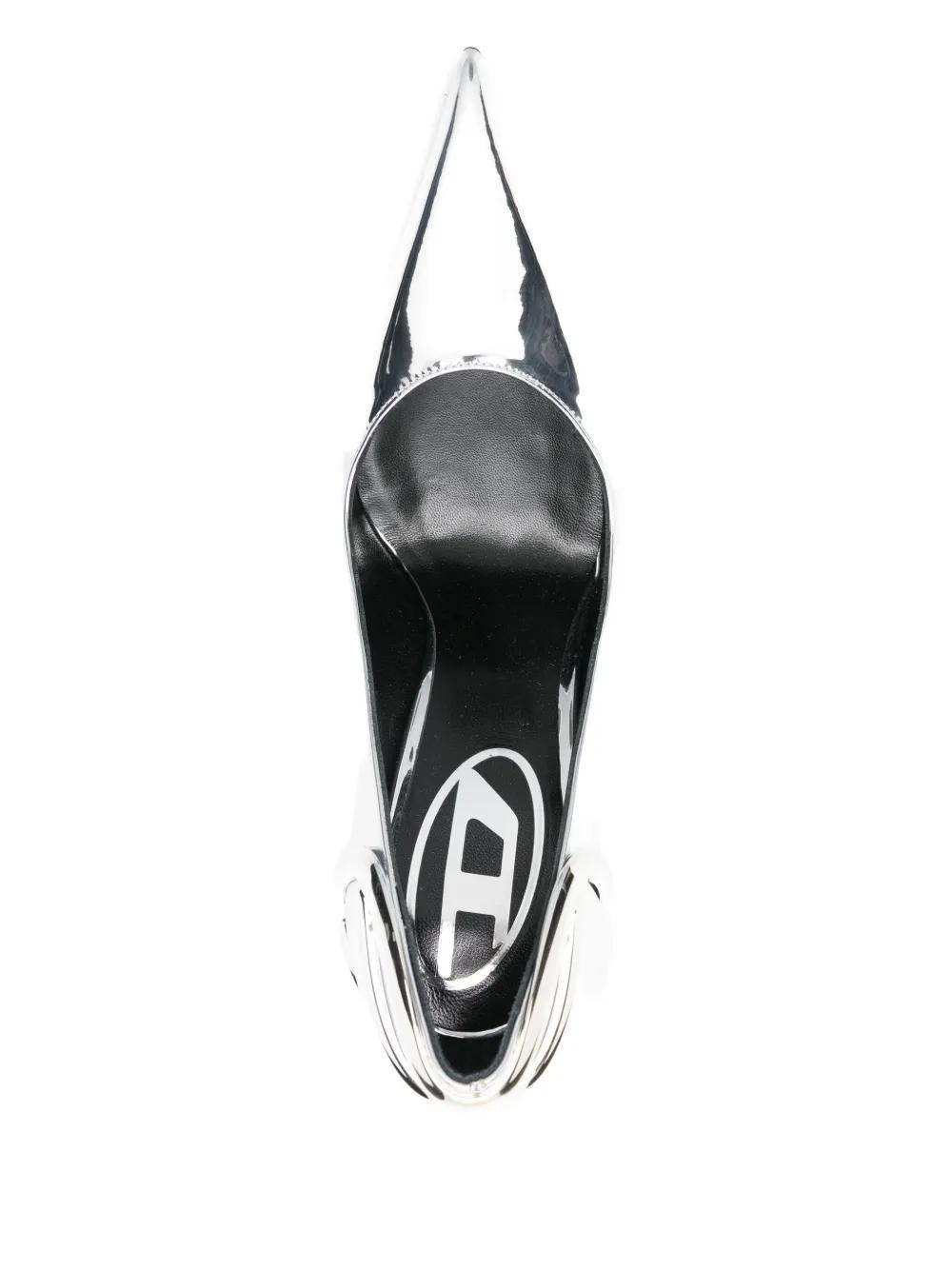 Diesel 105mm pointed toe logo pumps - Silver