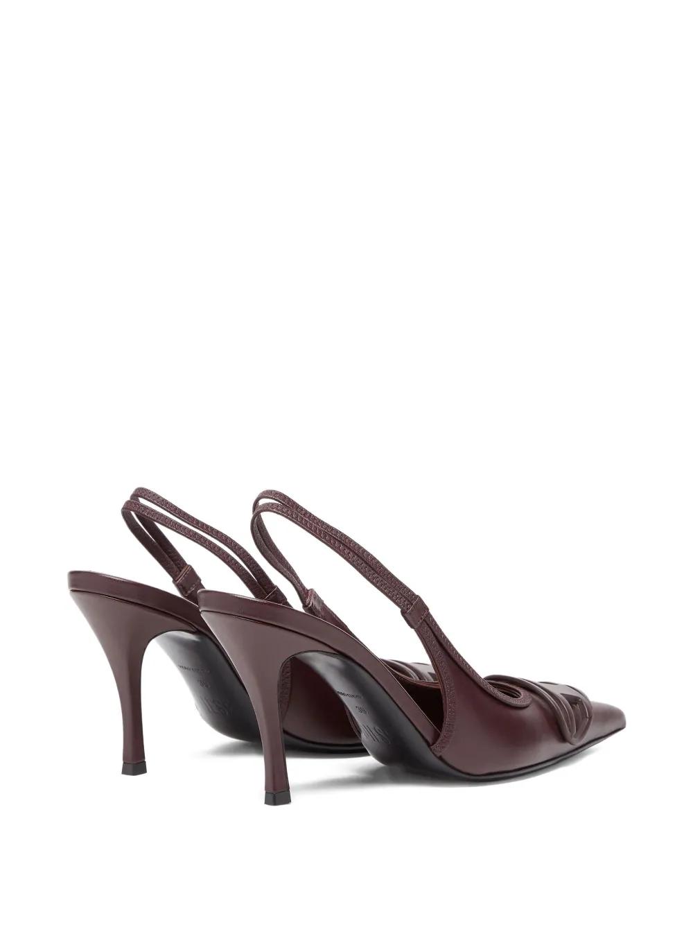 dark red ovine leather buckle detail pointed toe stiletto heel slingback strap