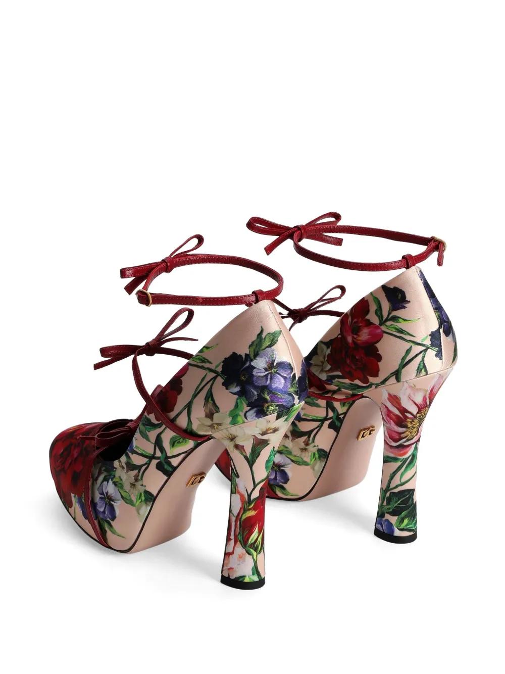 light beige buckle-fastening ankle strap high block heel bow detailing branded insole