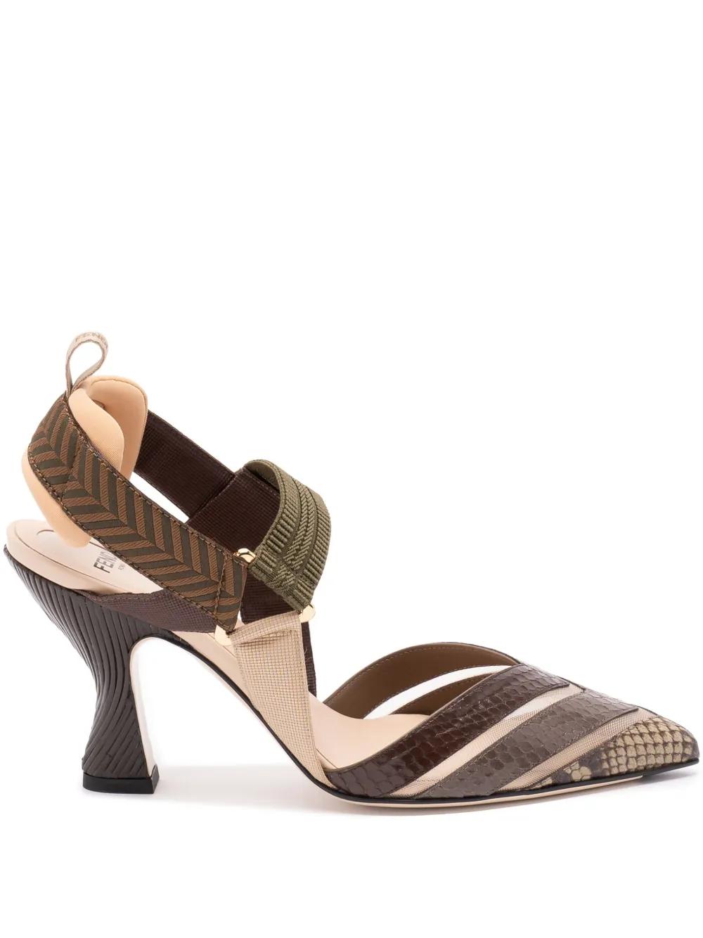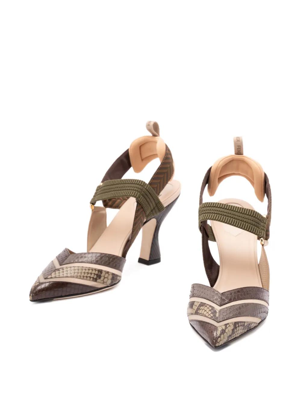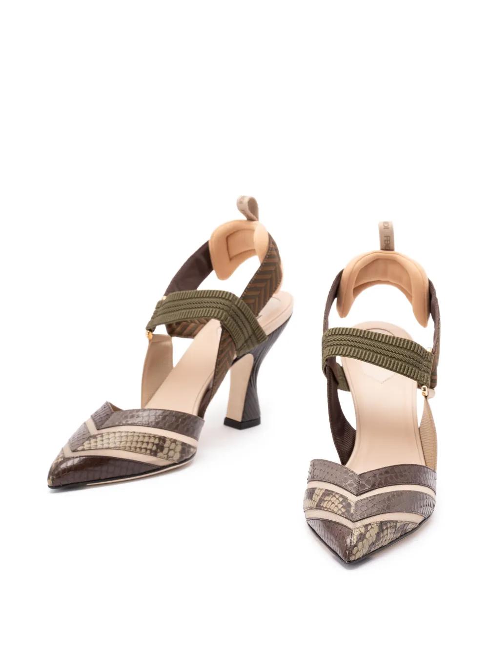 brown snakeskin-effect leather slingback strap elasticated strap sculpted heel