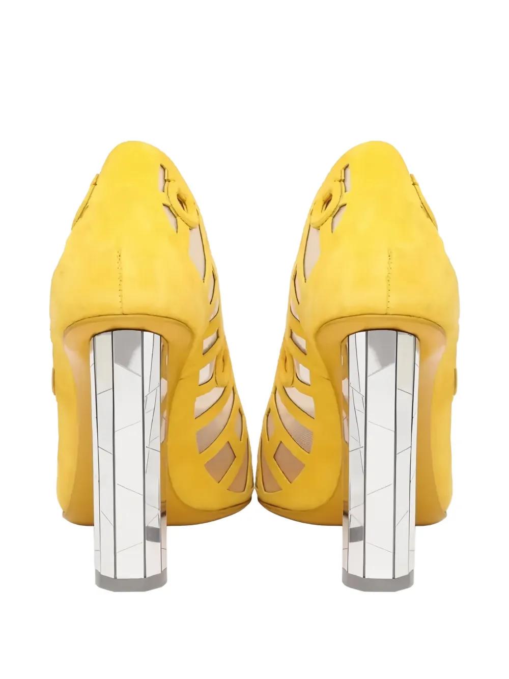 yellow suede slip-on style cut-out detail block heel