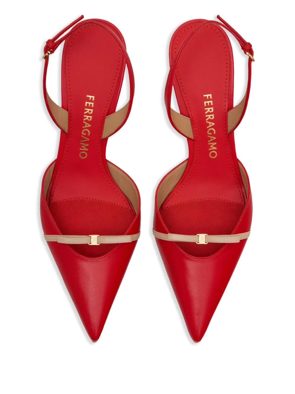 red buckle-fastening slingback strap stiletto heel pointed toe leather sole