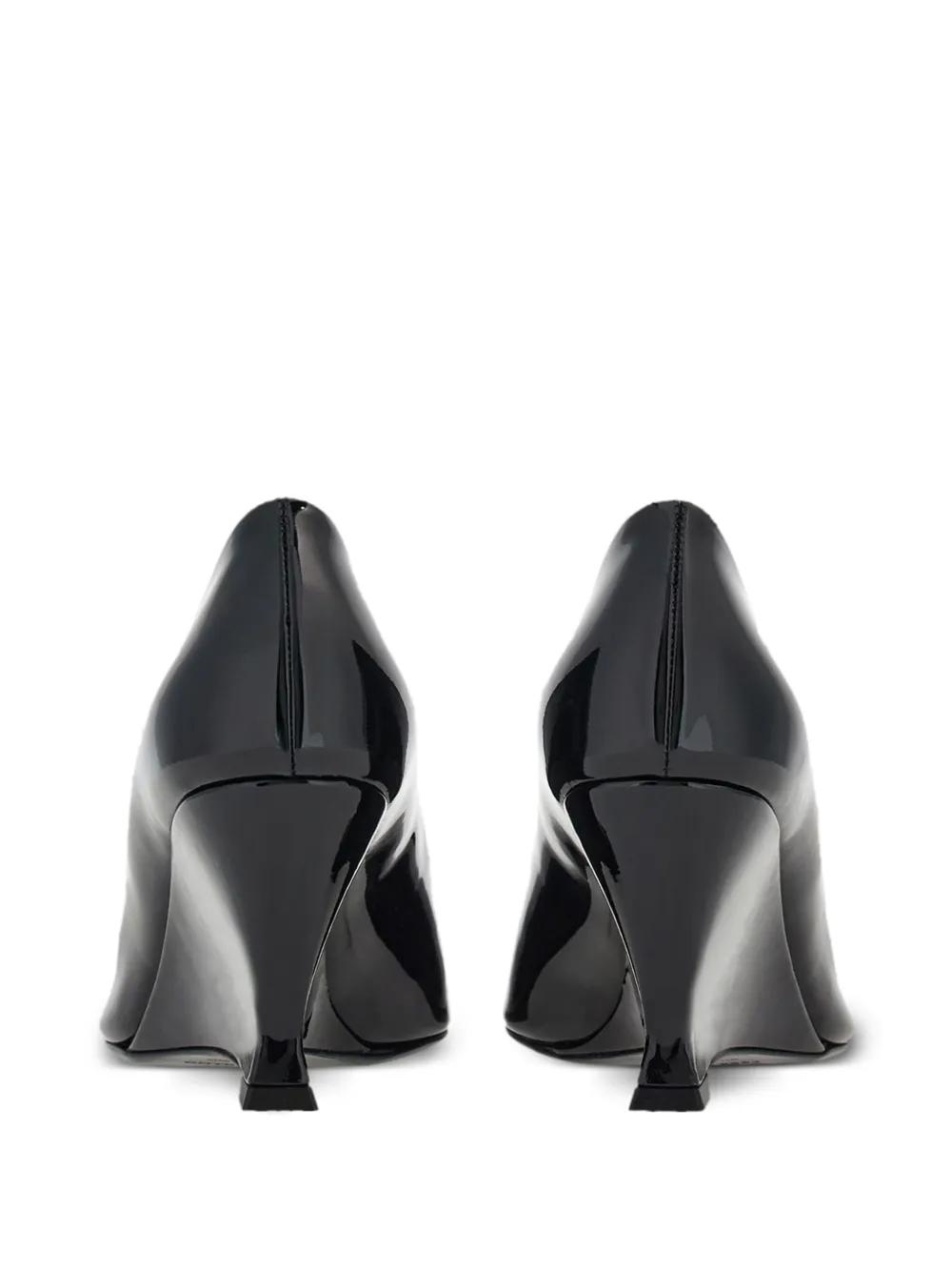 black calf leather goatskin patent finish pointed toe slip-on style 70mm high wedge heel